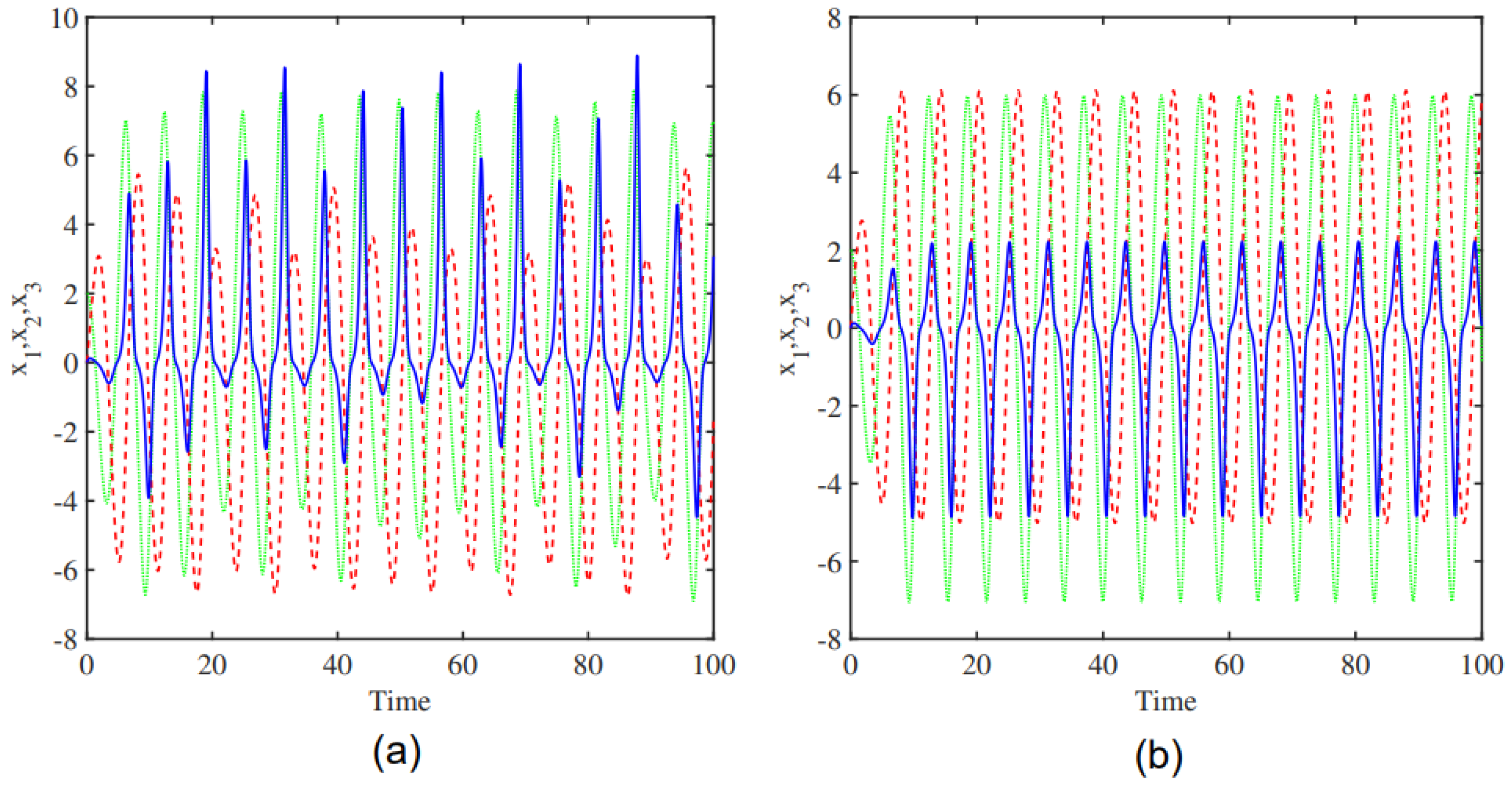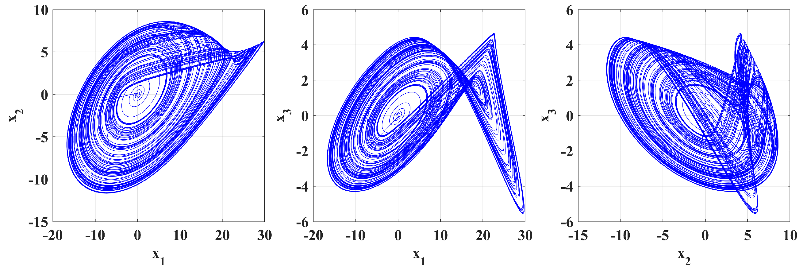 - By integrating variable fractional parameters , , and , we investigate the fundamental fractional chaotic system and uncover unexpected and previously unpublished complicated dynamics. This research improves our knowledge of the system’s nonlinear dynamics and shows that fractional orders really drive chaos.