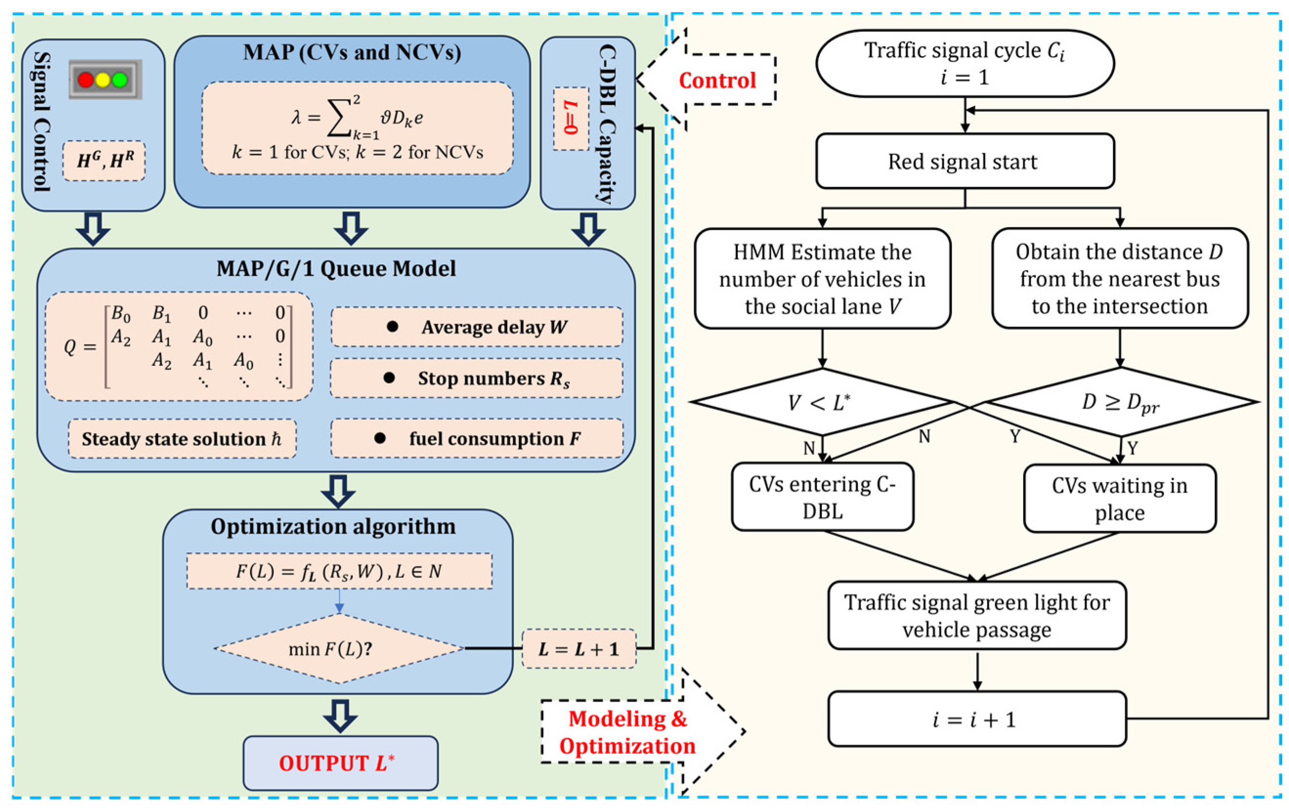 - An adaptive control mechanism integrating real-time estimation. The HMM-based queue estimation model enables online adjustments of the C-DBL activation and capacity according to observed traffic conditions, ensuring responsive and stable operation.