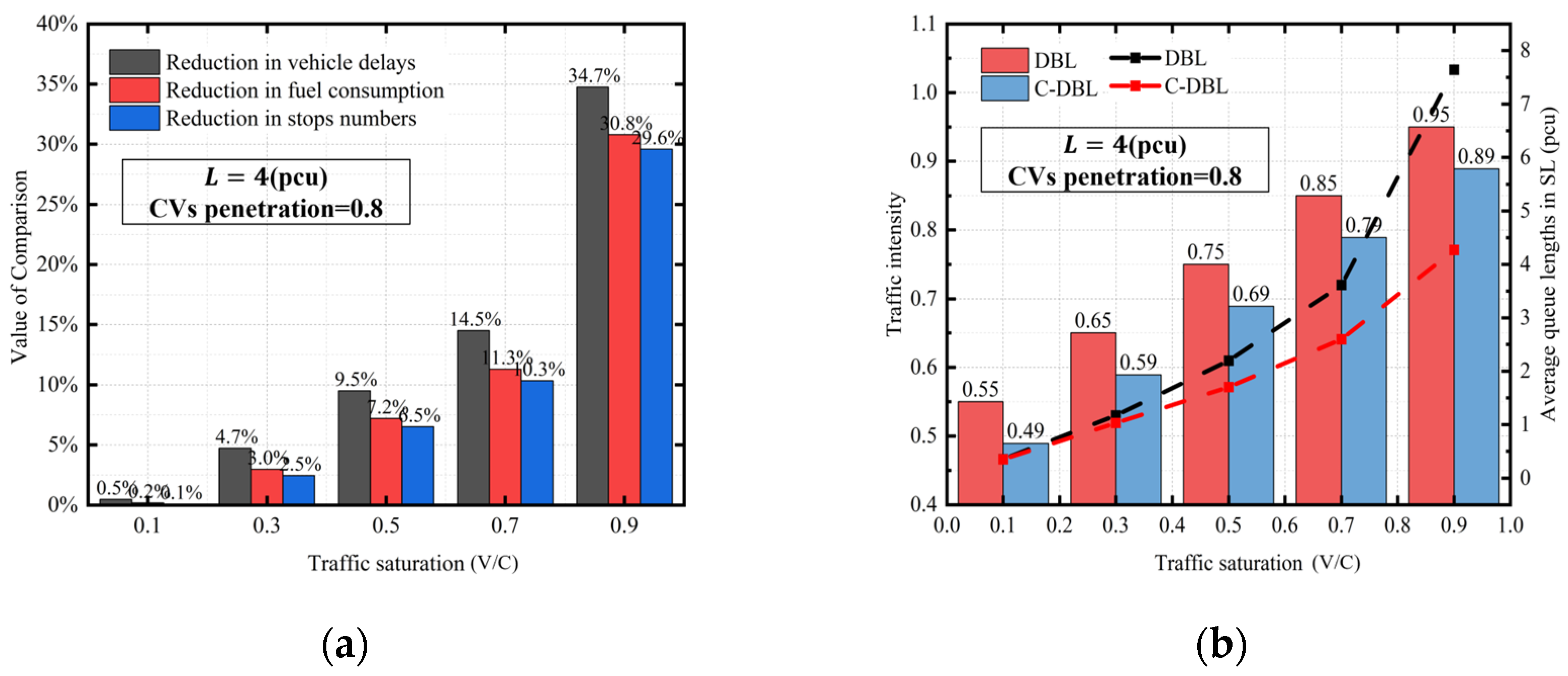 - Yang, B.; Wang, C.; Cao, Y.; Yang, Q. Modeling and evaluating the impact of variable bus lane on isolated signal intersection performance. Phys. A Stat. Mech. Its Appl. 2024, 643, 129786. [Google Scholar] [CrossRef]