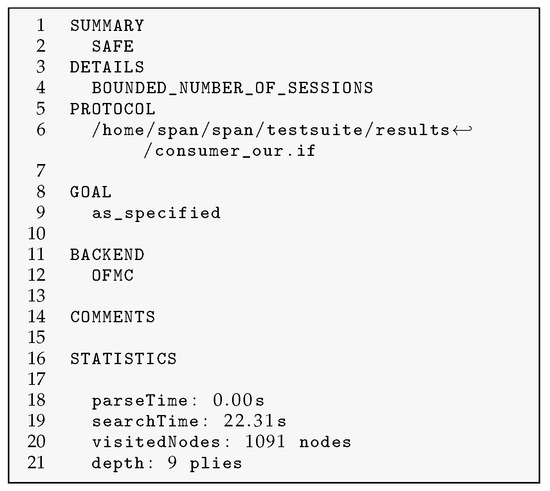- Basin, D.; Modersheim, S.; Vigano, L. OFMC: A Symbolic Model Checker for Security Protocols. Int. J. Inf. Secur. 2005, 4, 181–208. [Google Scholar] [CrossRef]