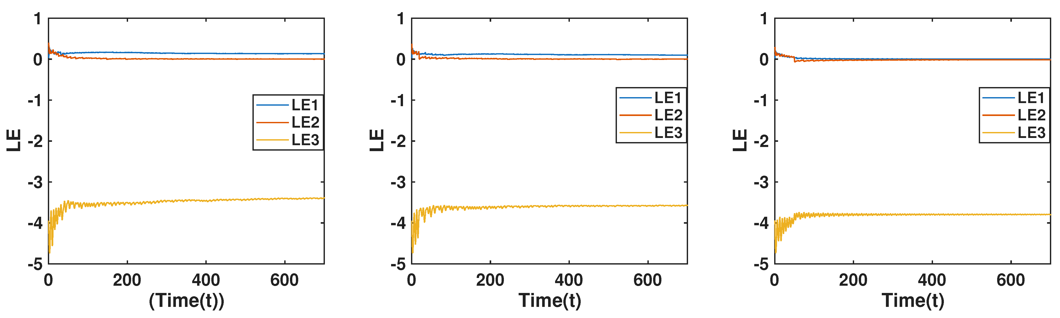 - Allogmany, R.; Almuallem, N.A.; Alsemiry, R.D.; Abdoon, M.A. Exploring Chaos in Fractional Order Systems: A Study of Constant and Variable-Order Dynamics. Symmetry 2025, 17, 605. [Google Scholar] [CrossRef]