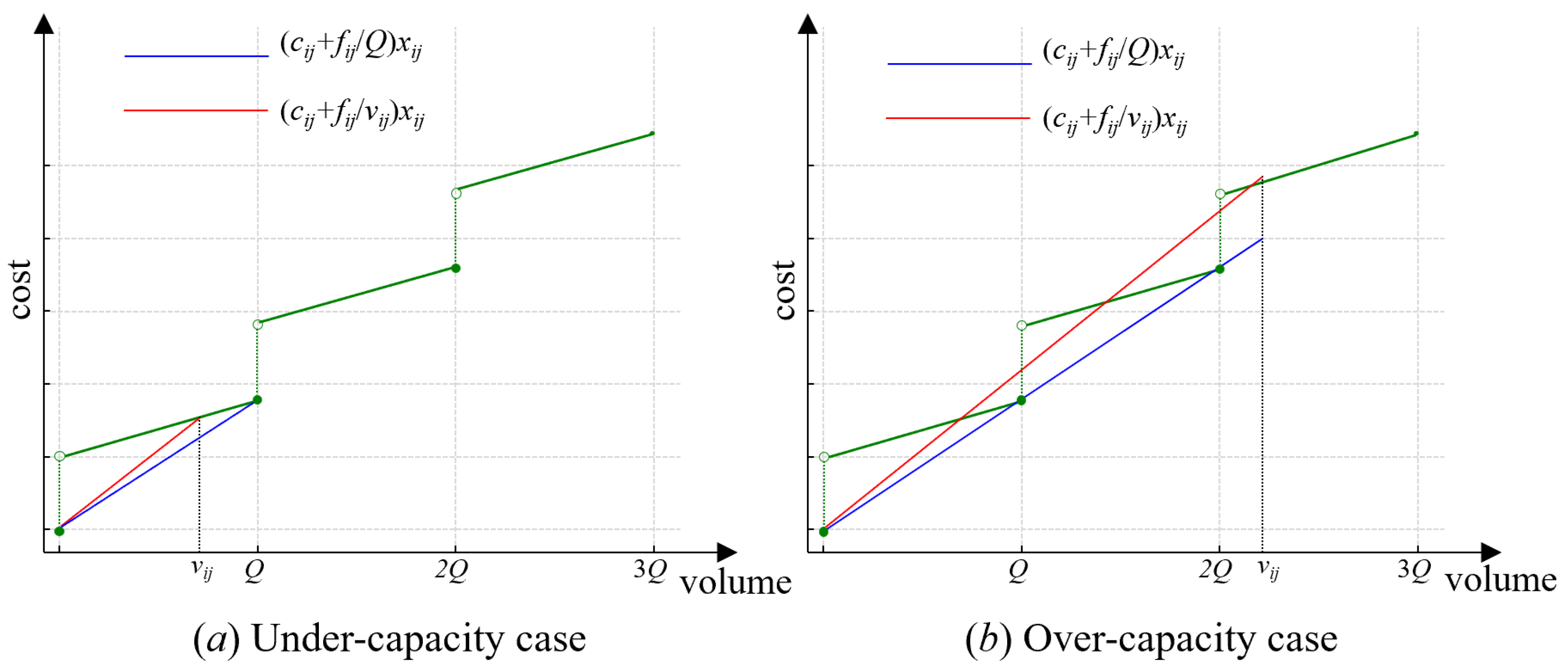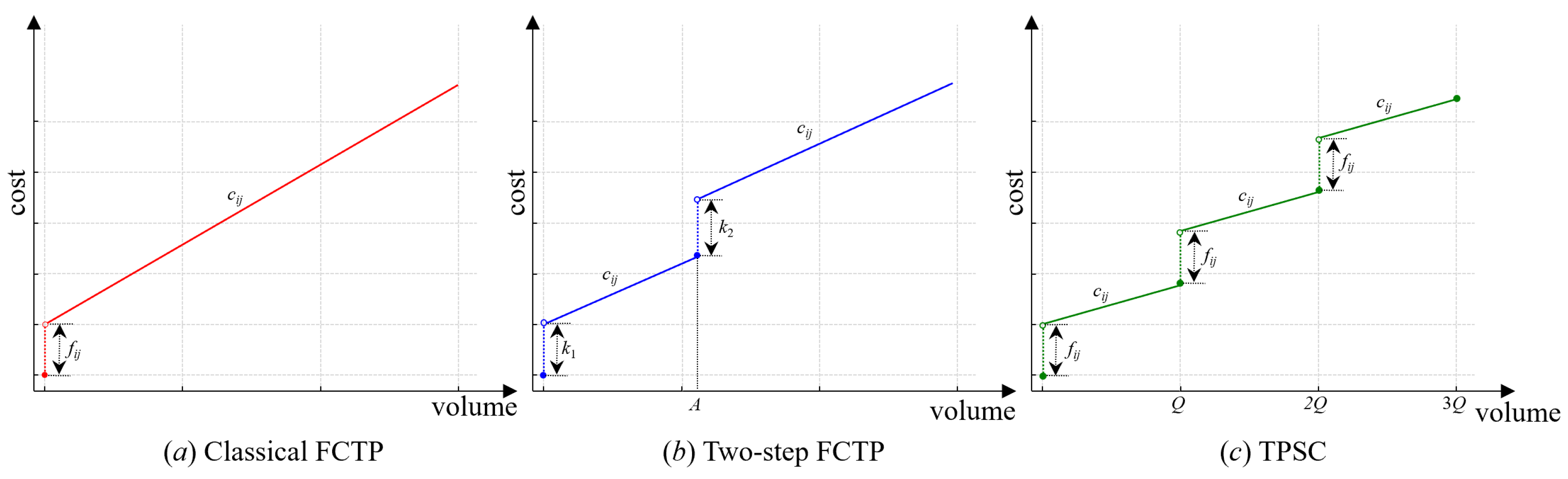 - Xie, F.; Jia, R. Nonlinear fixed charge transportation problem by minimum cost flow-based genetic algorithm. Comput. Ind. Eng. 2012, 63, 763–778. [Google Scholar] [CrossRef]