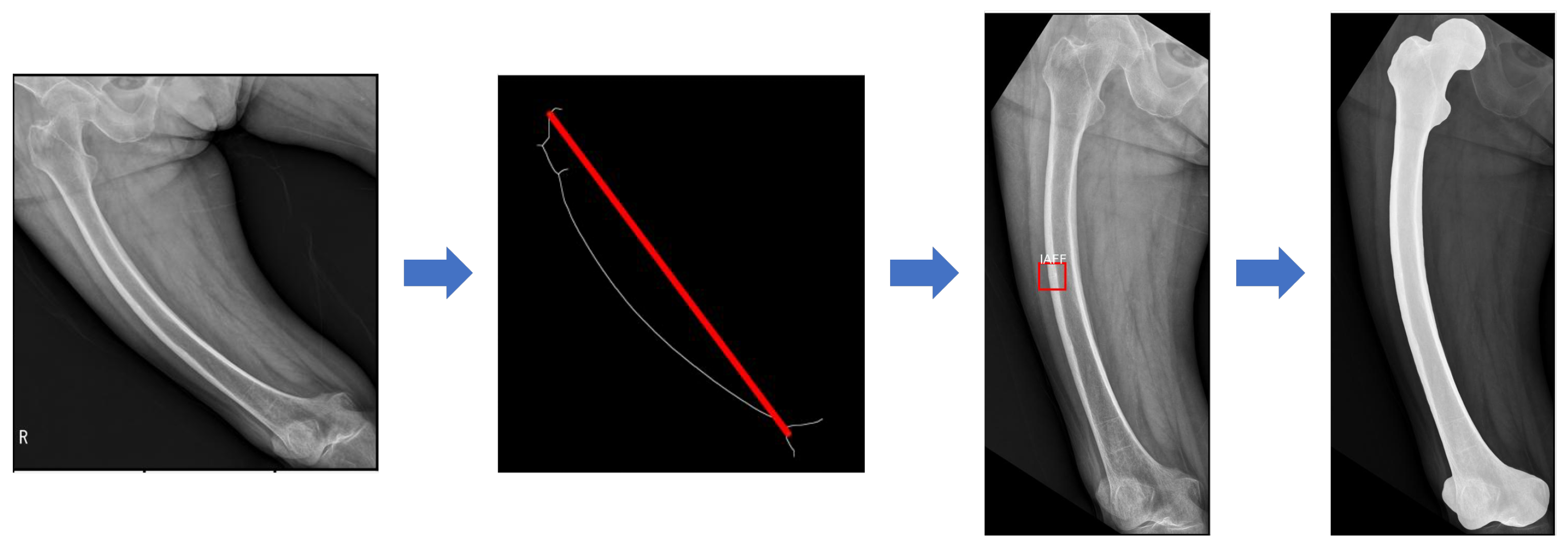 - We propose a novel preprocessing pipeline for anatomical normalization of femur radiographic images.