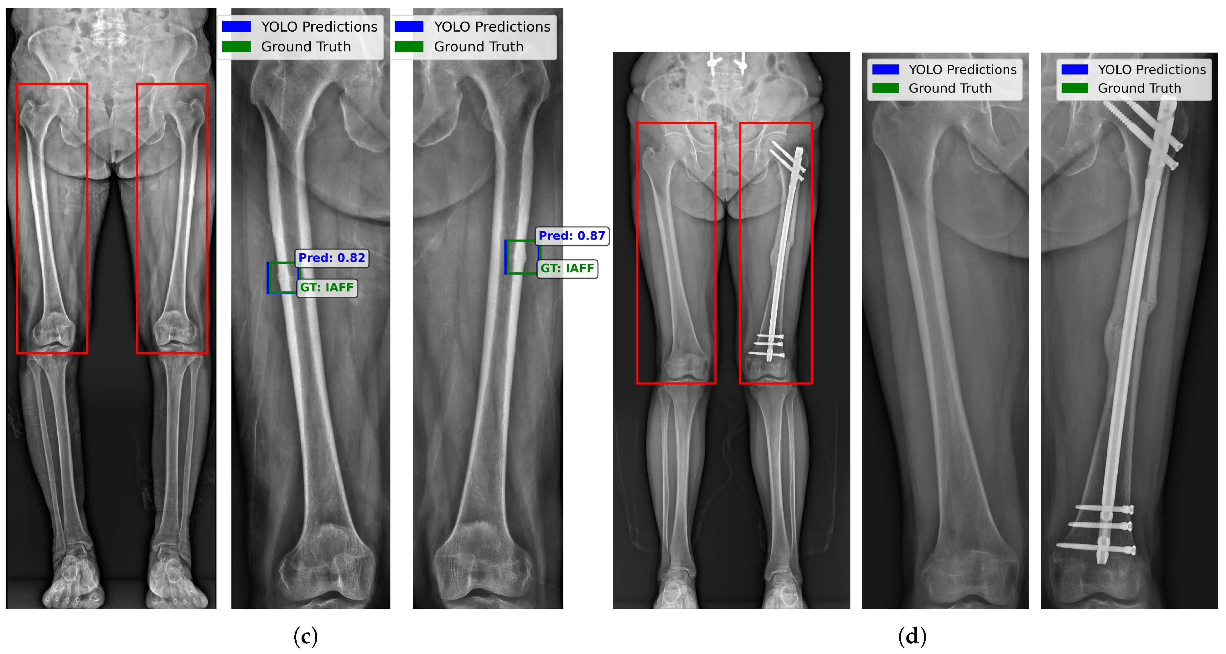 - Kim, T.; Moon, N.H.; Goh, T.S.; Jung, I.D. Detection of incomplete atypical femoral fracture on anteroposterior radiographs via explainable artificial intelligence. Sci. Rep. 2023, 13, 10415. [Google Scholar] [CrossRef]