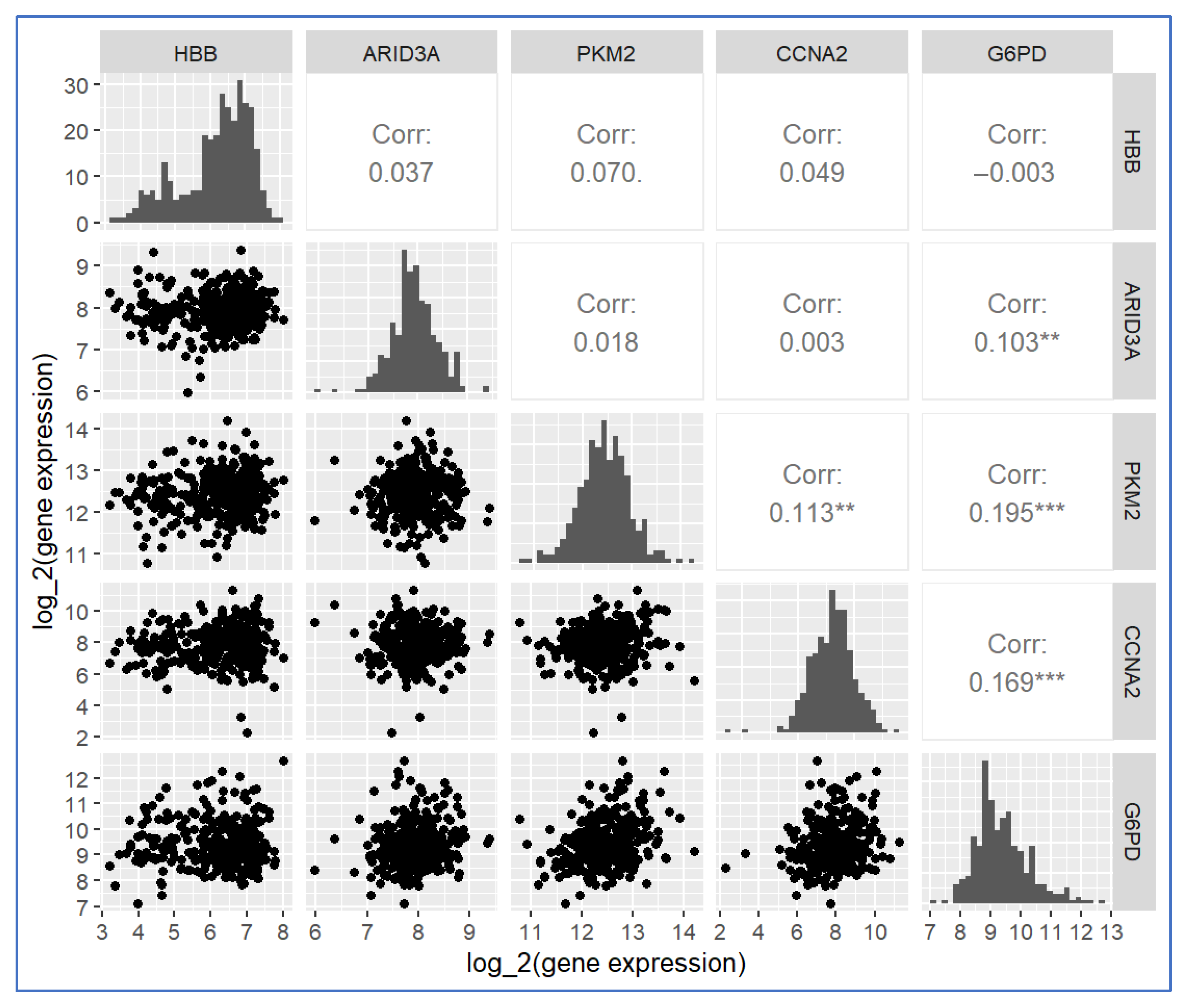 | HBB | ARID3A | PKM2 | CCNA2 | G6PD | PI | ||