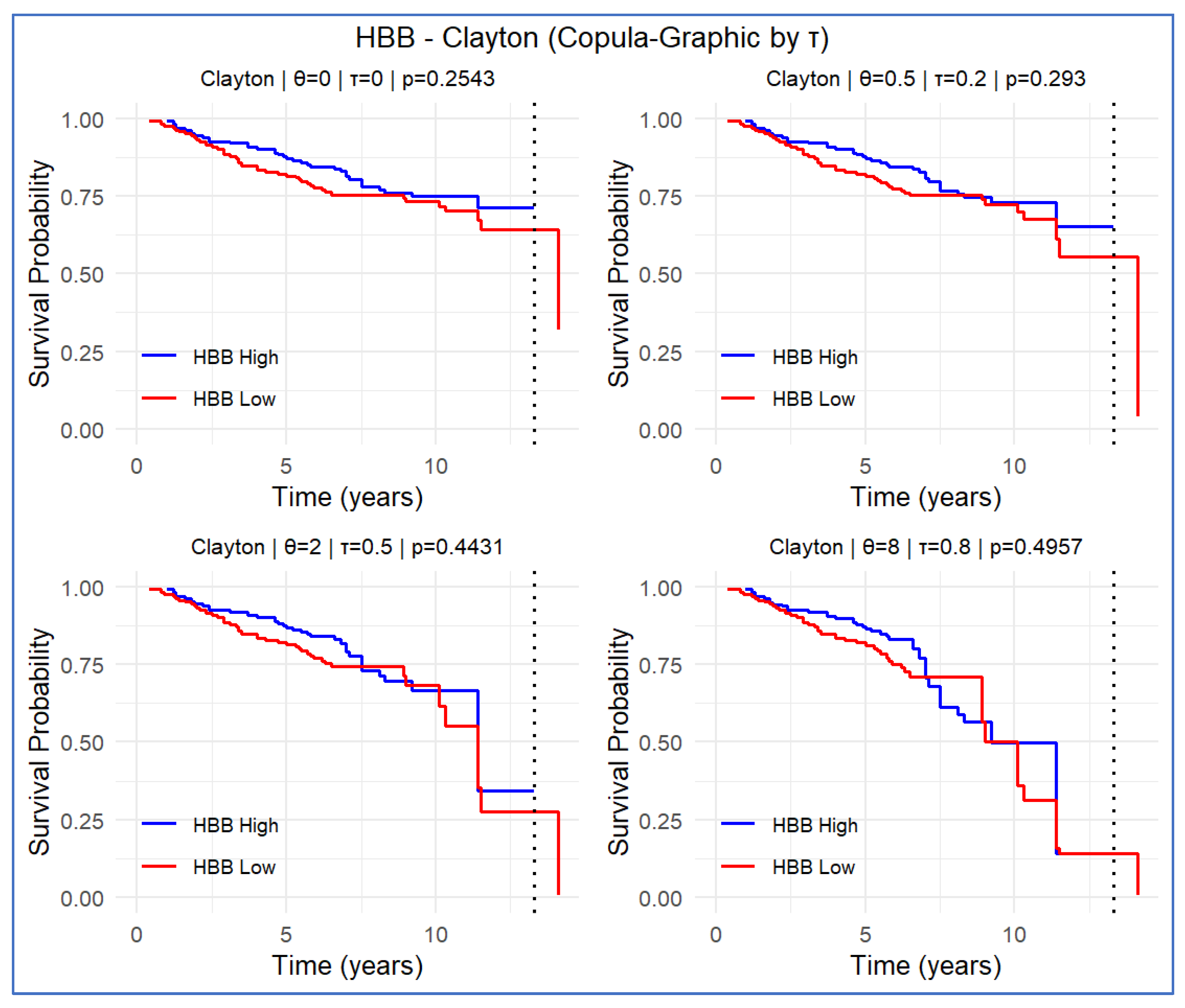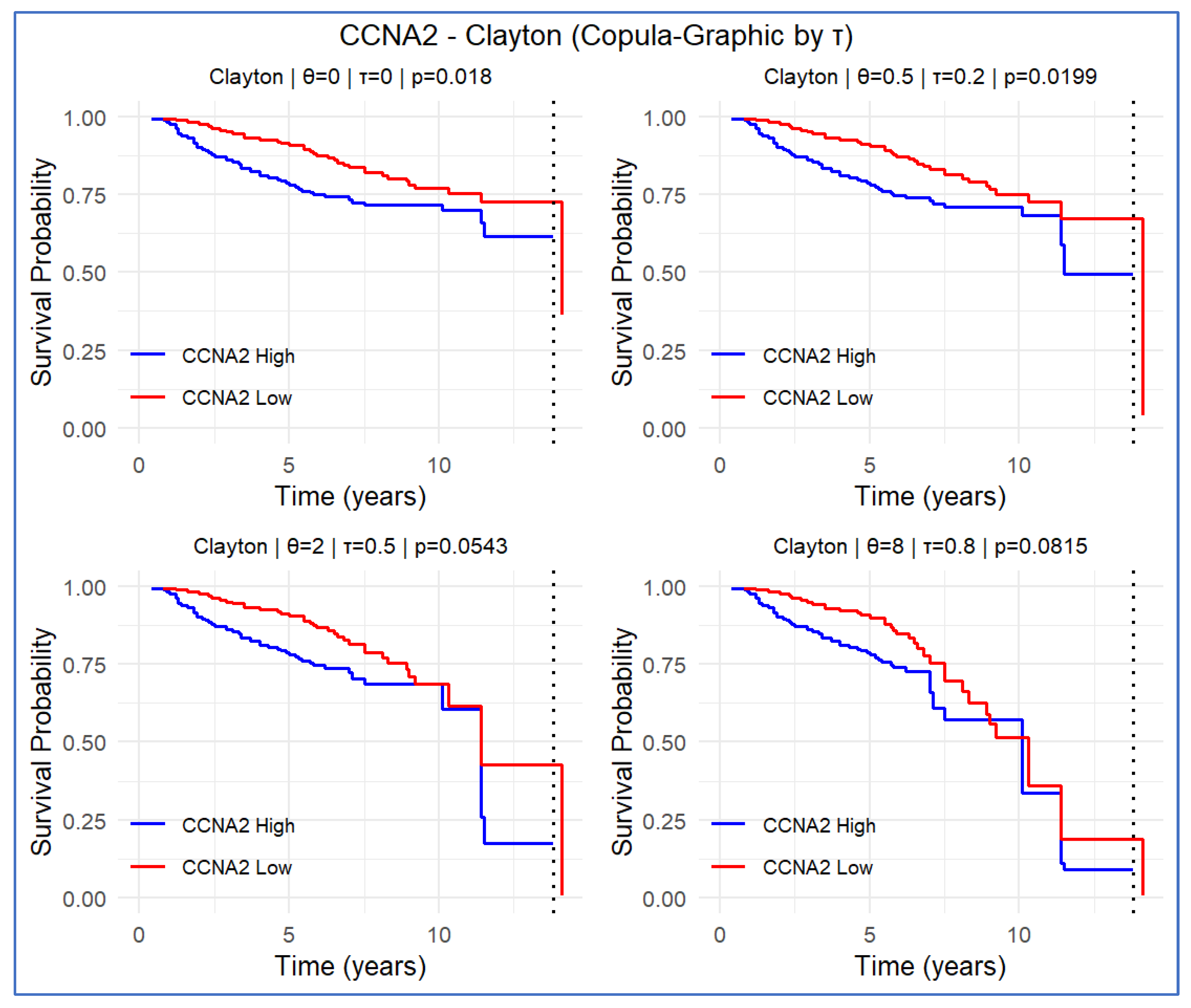 - Yeh, C.T.; Liao, G.Y.; Emura, T. Sensitivity analysis for survival prognostic prediction with gene selection: A copula method for dependent censoring. Biomedicines 2023, 11, 797. [Google Scholar] [CrossRef] [PubMed]