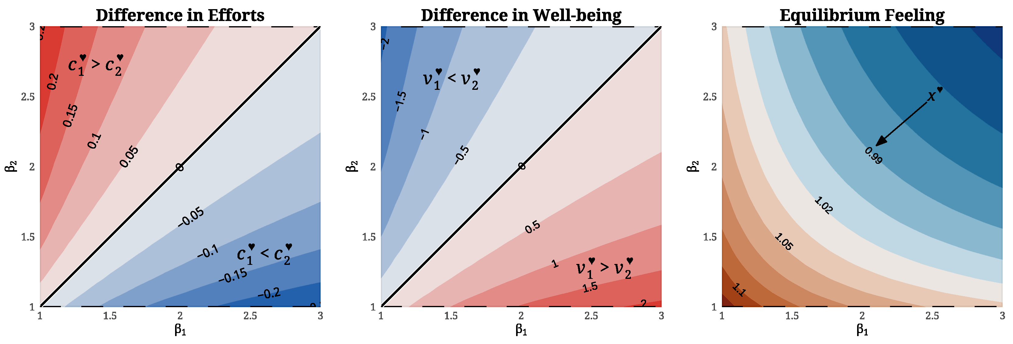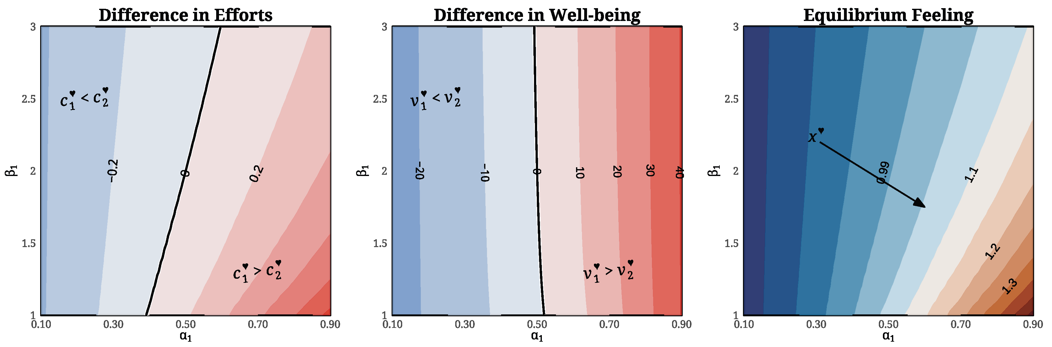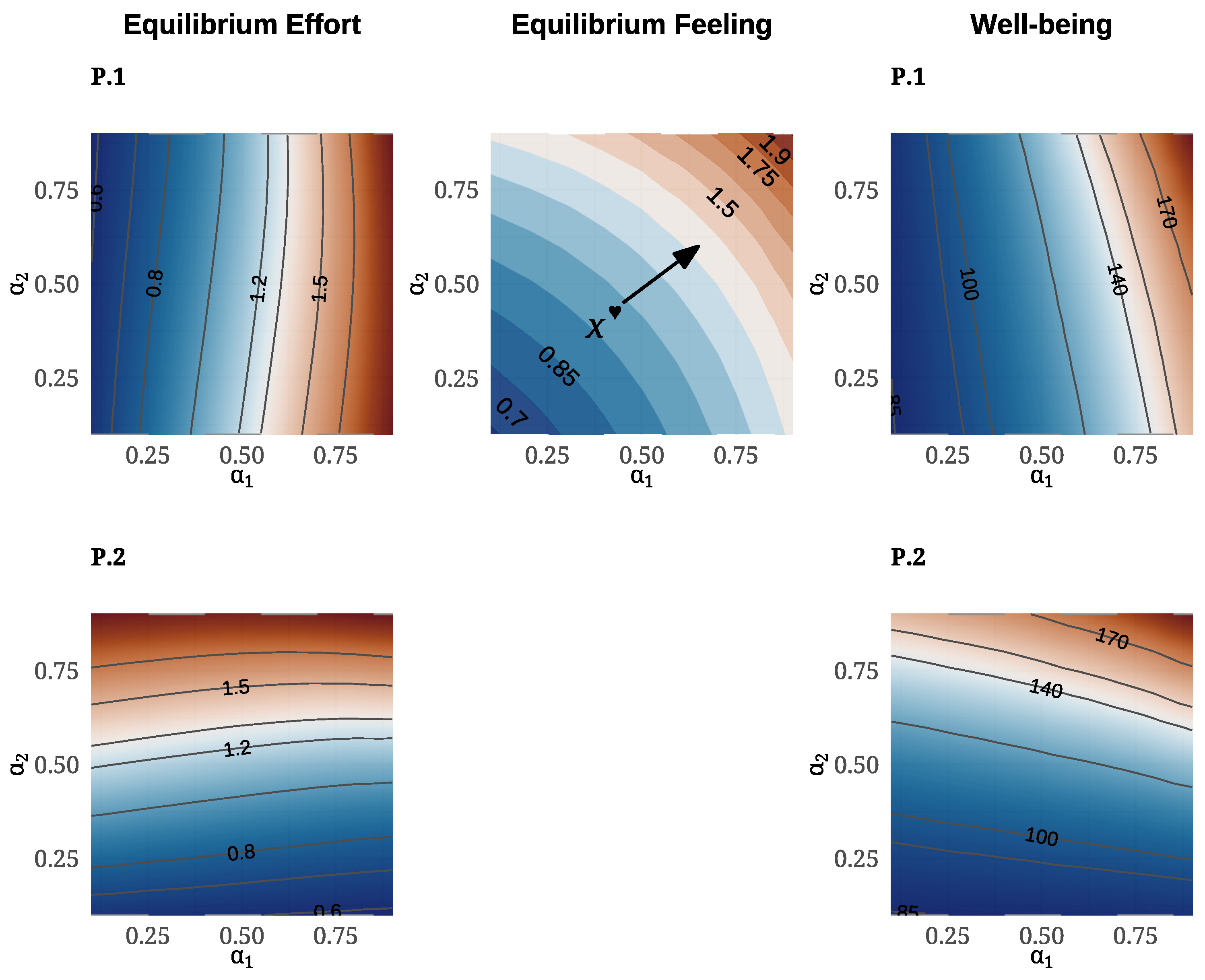 3.2. Emotional Contour Maps at Equilibrium: Computational Feedback Analysis
