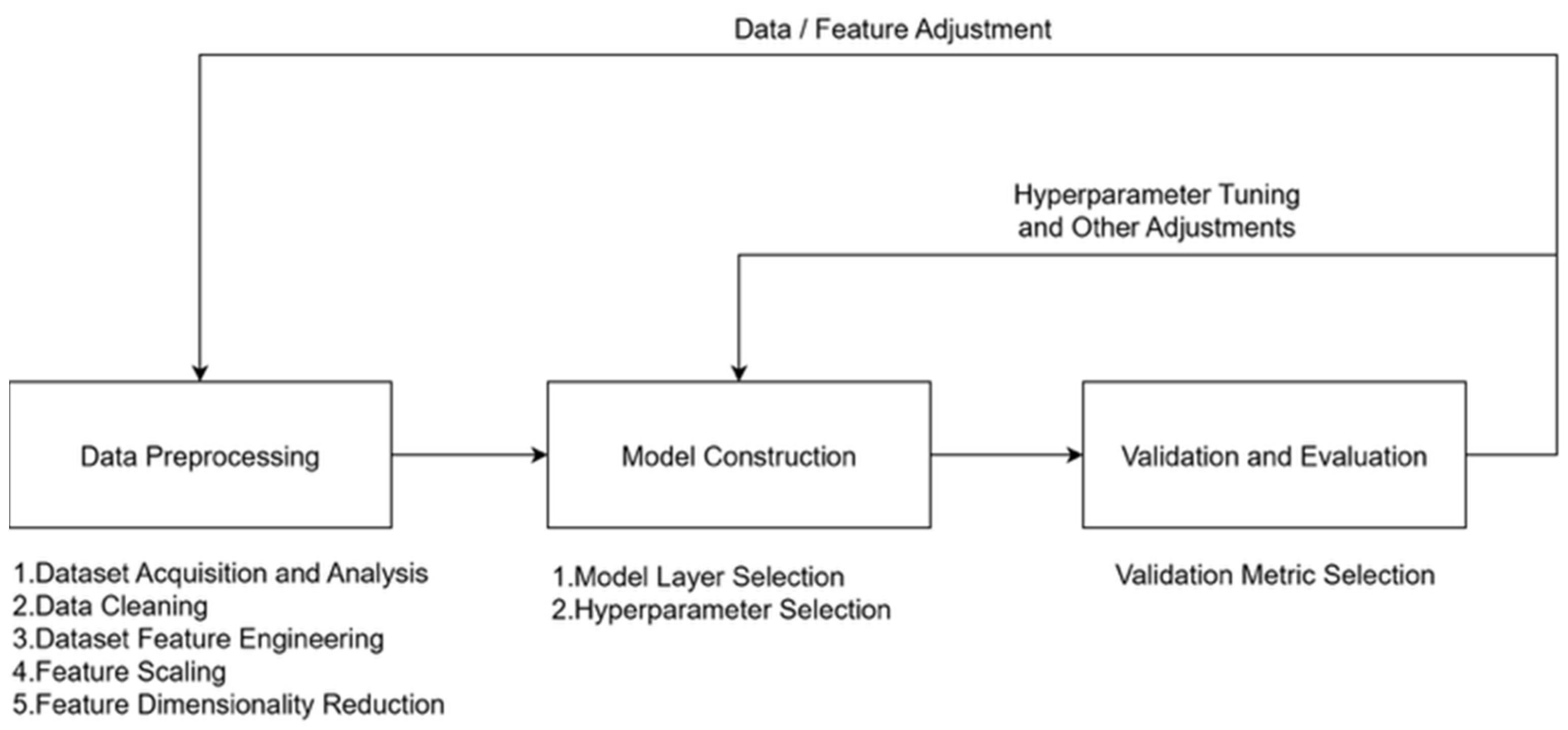 The second stage is model construction. At this step, different neural network architectures are explored and optimized by tuning critical hyperparameters, including learning rate, batch size, and the number of hidden layers. Such optimization is essential to ensure both stable convergence and strong predictive performance.