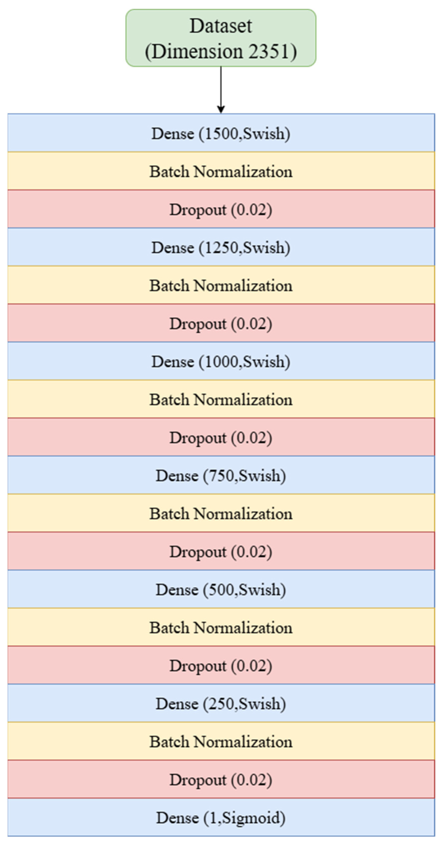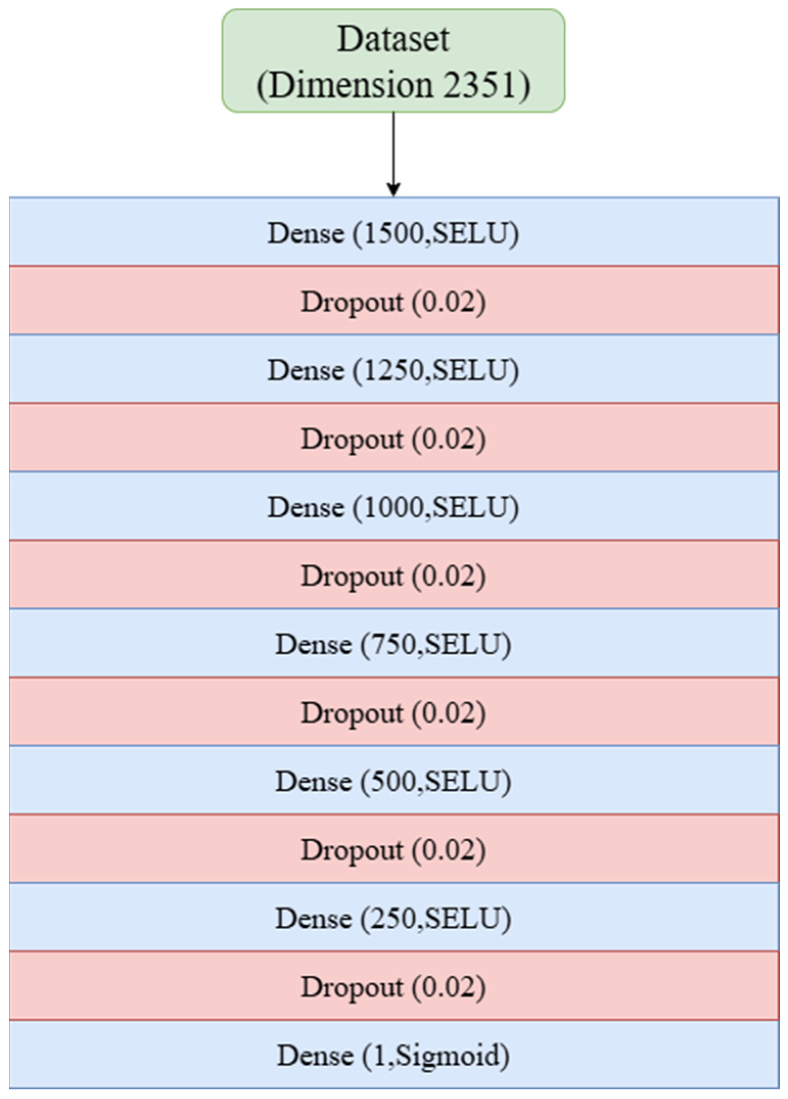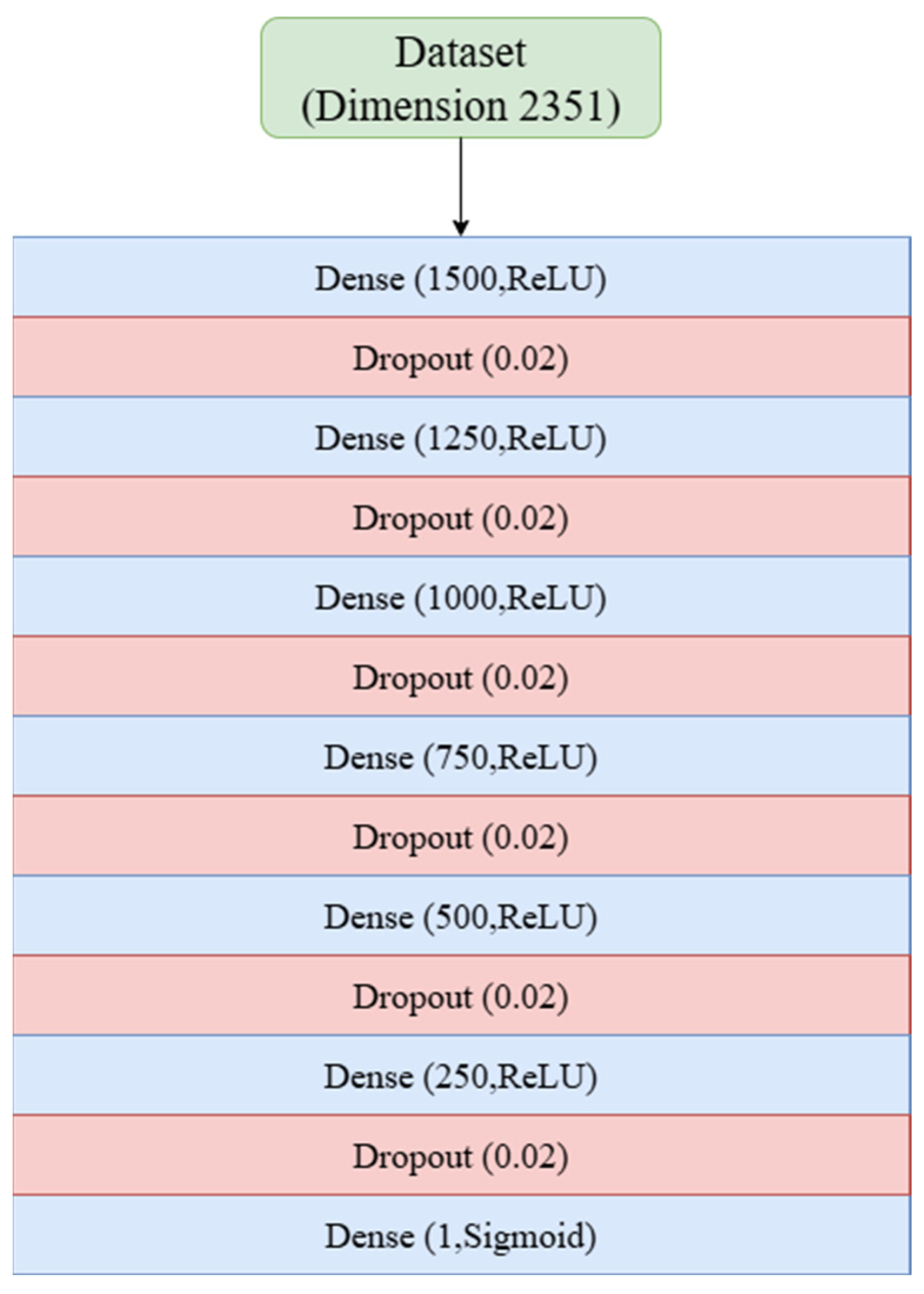 14] and applied them to the three deep learning models developed in this study. After reducing the input dimensionality to 276, the dense layers of each model were proportionally scaled down. The resulting hidden units were set to 180, 150, 120, 90, 60, and 30, respectively.