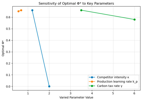 The numerical and sensitivity analyses demonstrate that the proposed cost allocation framework—integrating learning–forgetting behavior, market competition, and environmental taxation—serves not only as an analytical optimization tool but also as a strategic instrument for alliance governance under uncertain and dynamic conditions. The results show that the optimal allocation rate ≈ 0.66 is not fixed; it adjusts systematically as firms respond to shifts in competition, learning retention, and environmental regulation. This reinforces the principle that cost sharing should be managed as a dynamic coordination variable rather than a static contractual parameter.
