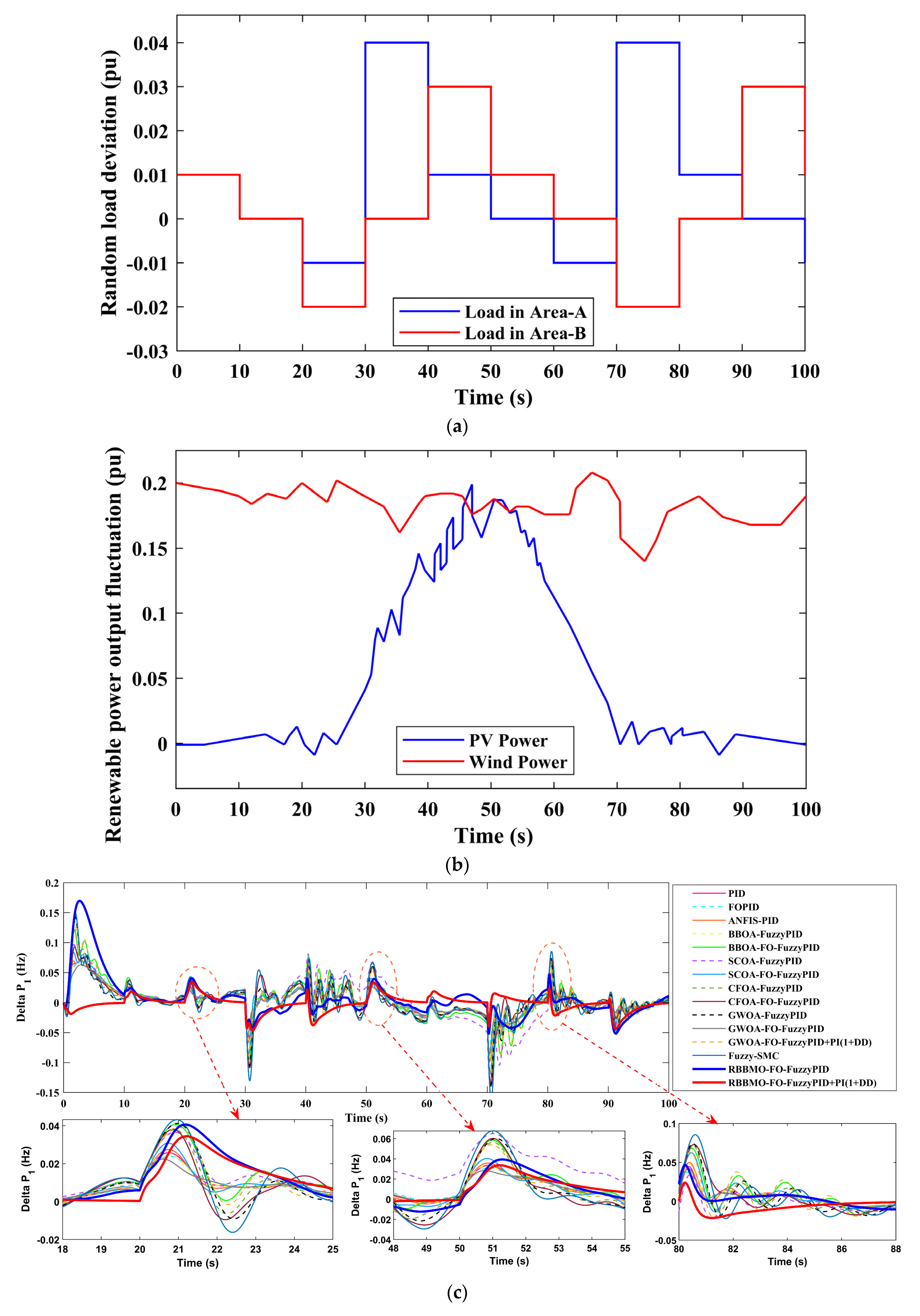 | [50] | FOPID-MDVA | To determine the unidentified variables of LFC reflected in FOPID, the method used a current MDVA algorithm. | The suggested controller is more sophisticated since it has twice as many movable parameters as a conventional PID controller. | Straightforward framework that is uncomplicated to carry out |