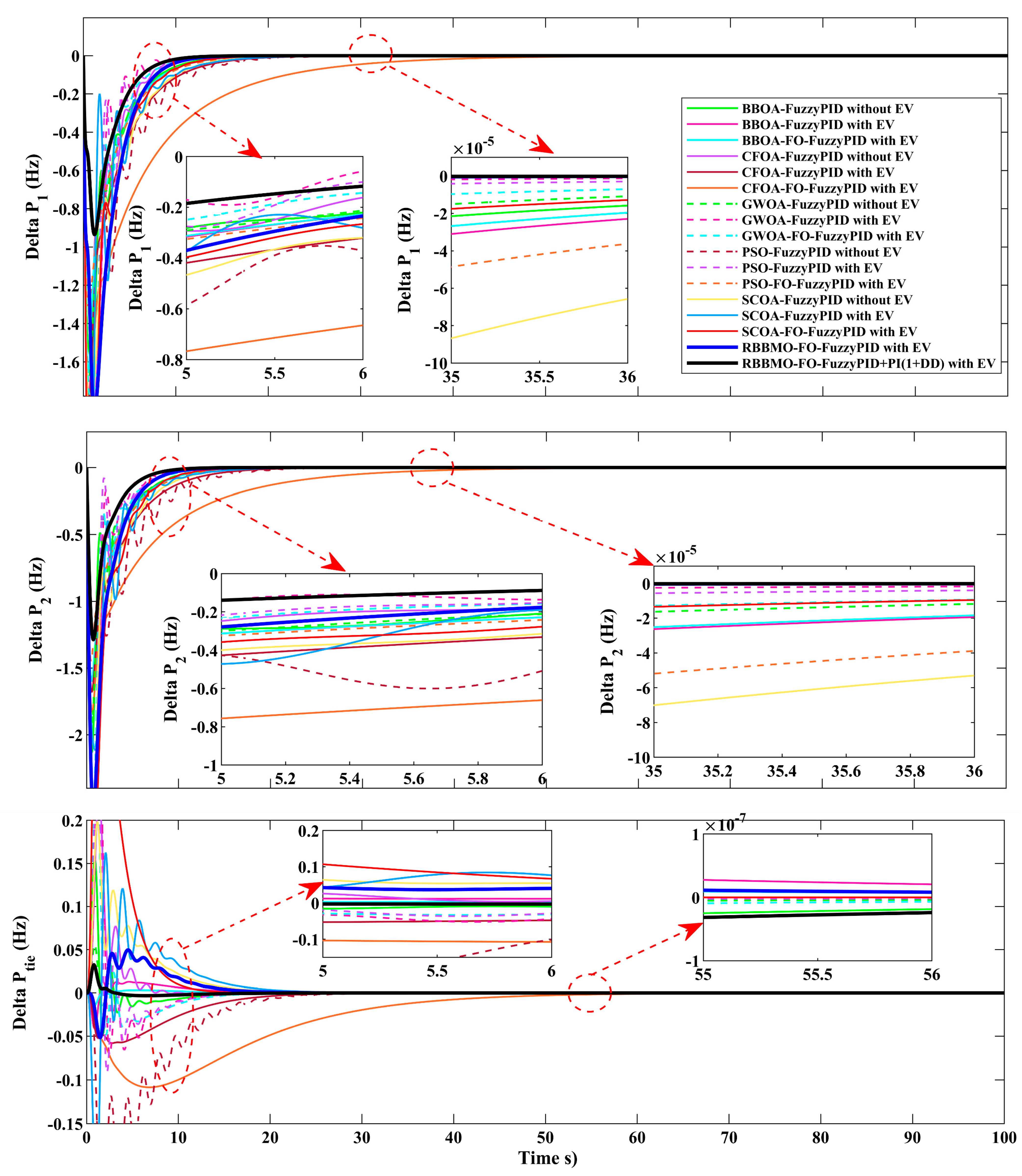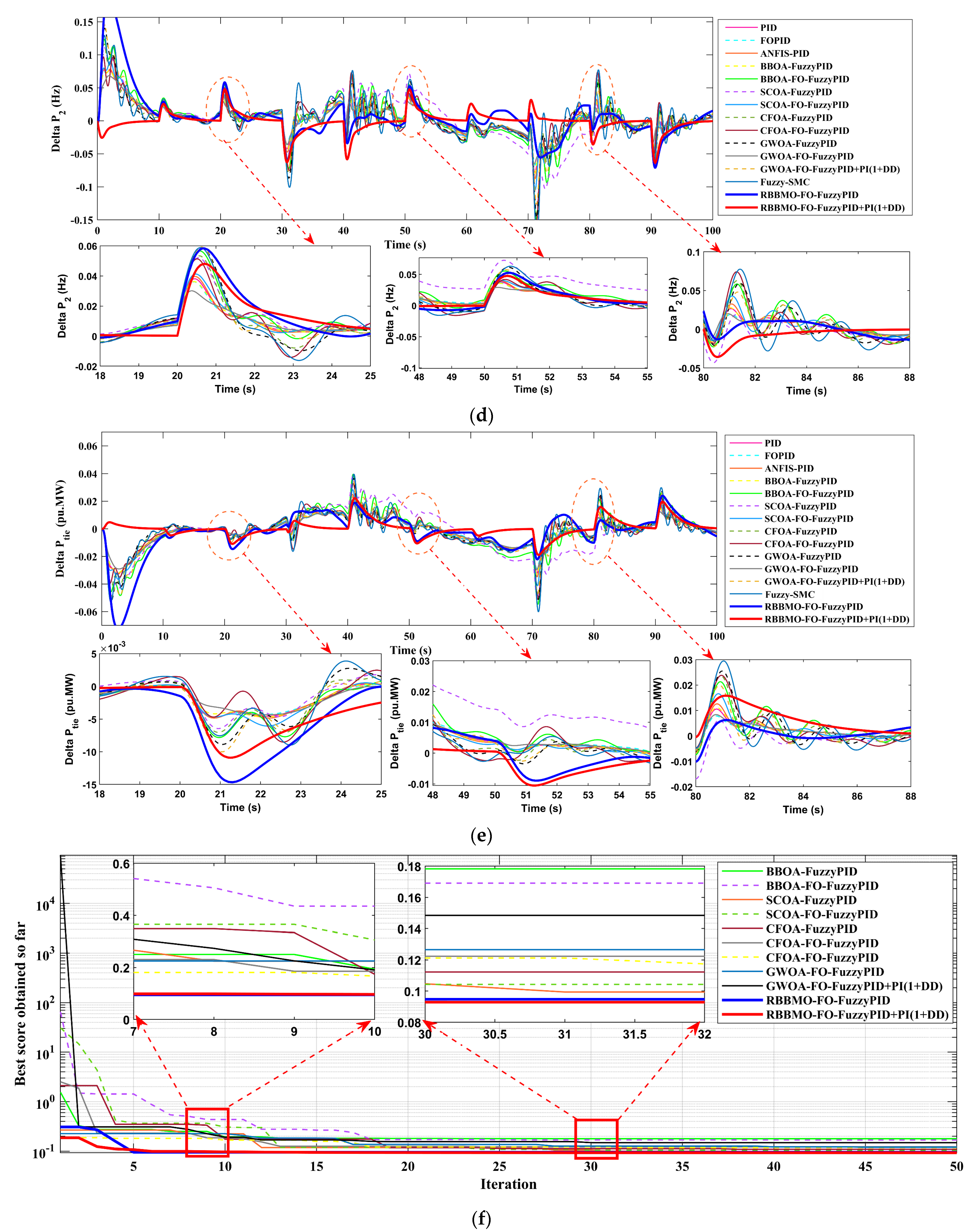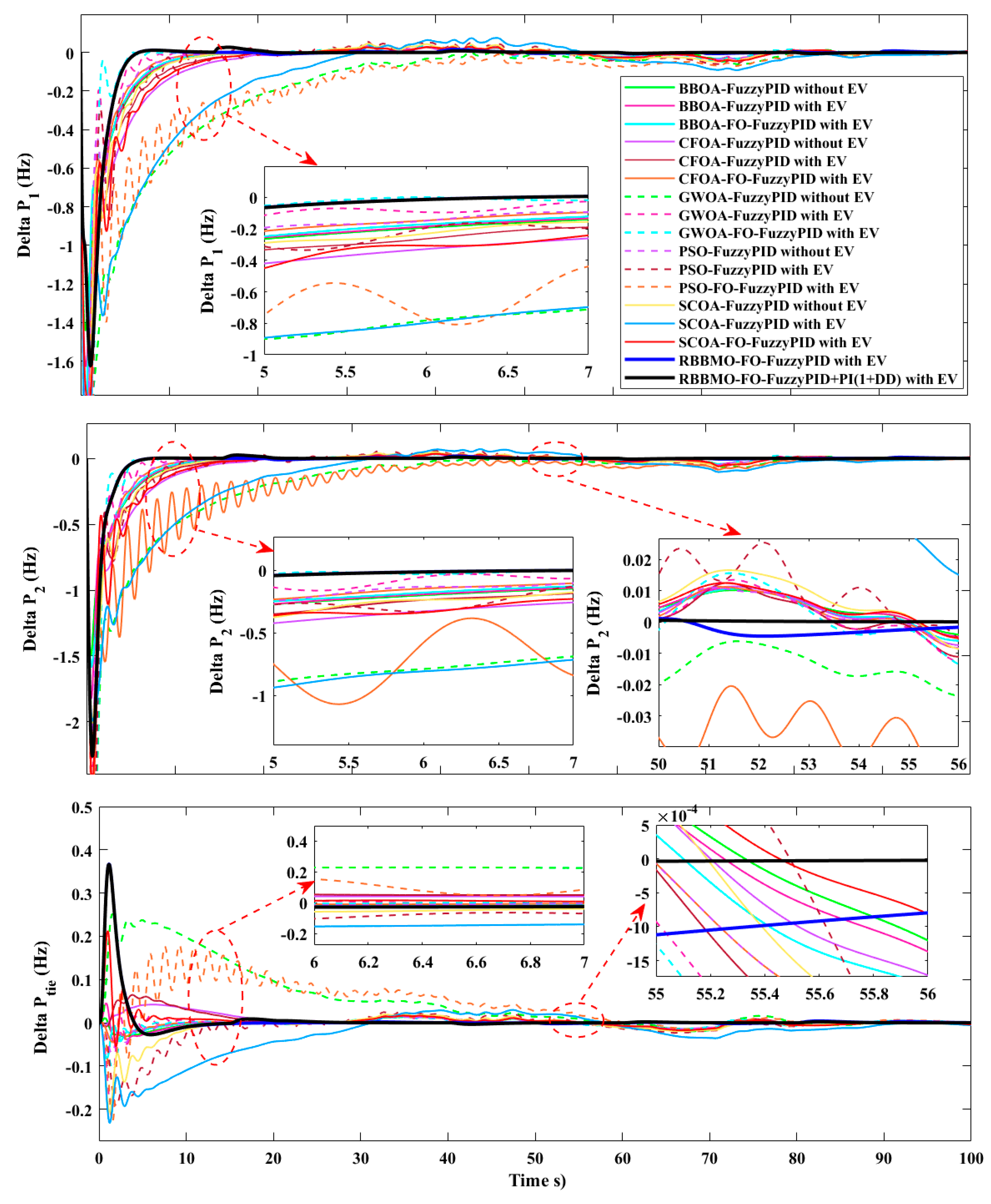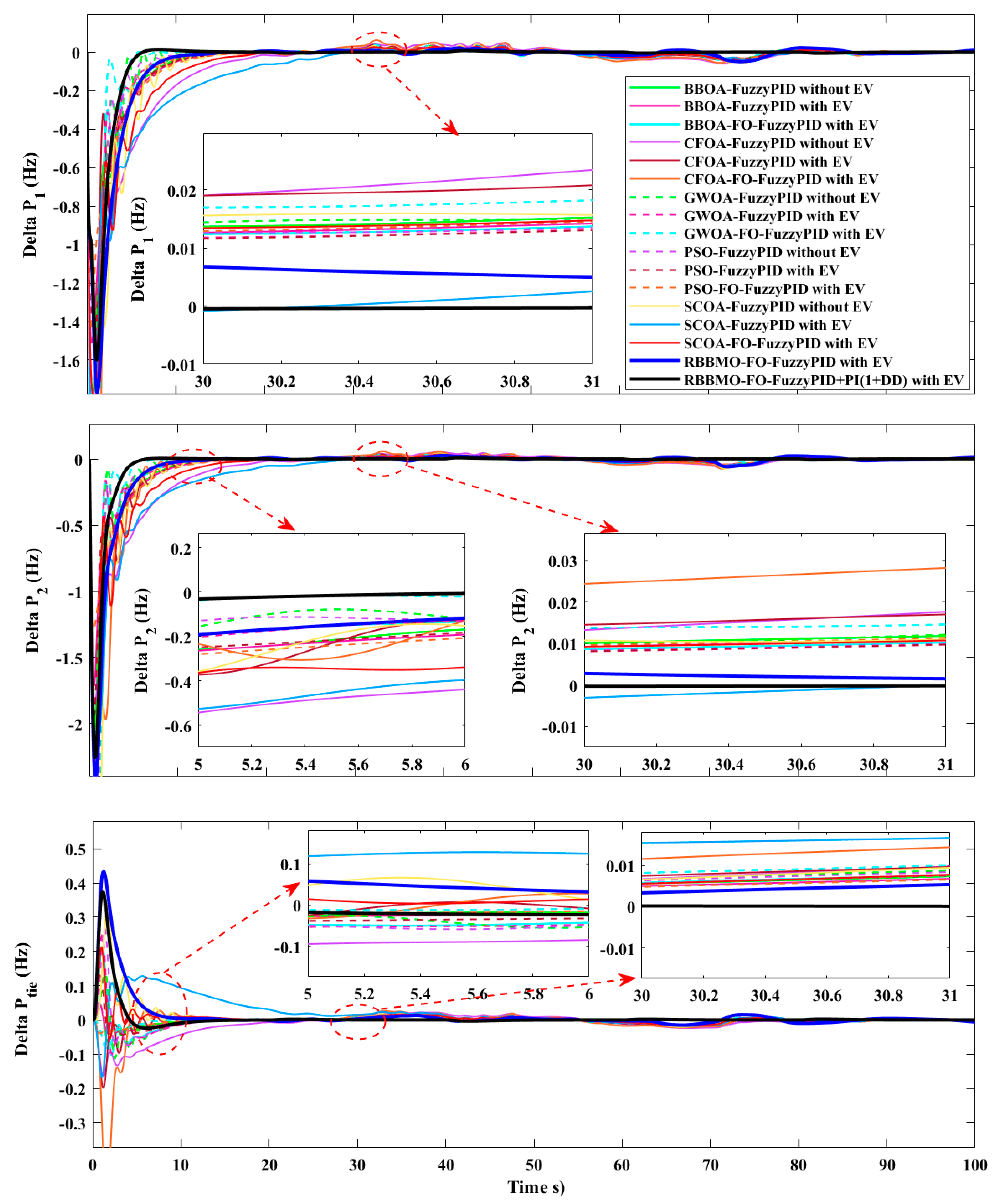 | Proposed | RBBMO-FO-FuzzyPID+PI(1+DD) | LFC in Autonomous Microgrids using Hybrid Algorithm hybrid, the proposed hybrid controller | | Our simple, flexible design suppresses high-frequency noise, stabilizes faster with fewer over/undershoots, and consistently outperforms traditional controllers in dynamic response. |