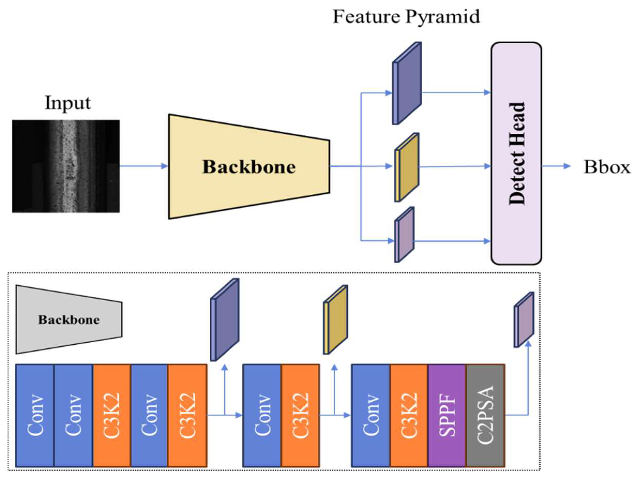 - Zhu, W.; Han, X.; Zhang, K.; Lin, S.; Jin, J. Application of YOLO11 model with spatial pyramid dilation convolution (SPD-Conv) and effective squeeze-excitation (EffectiveSE) fusion in rail track defect detection. Sensors 2025, 25, 2371. [Google Scholar] [CrossRef]