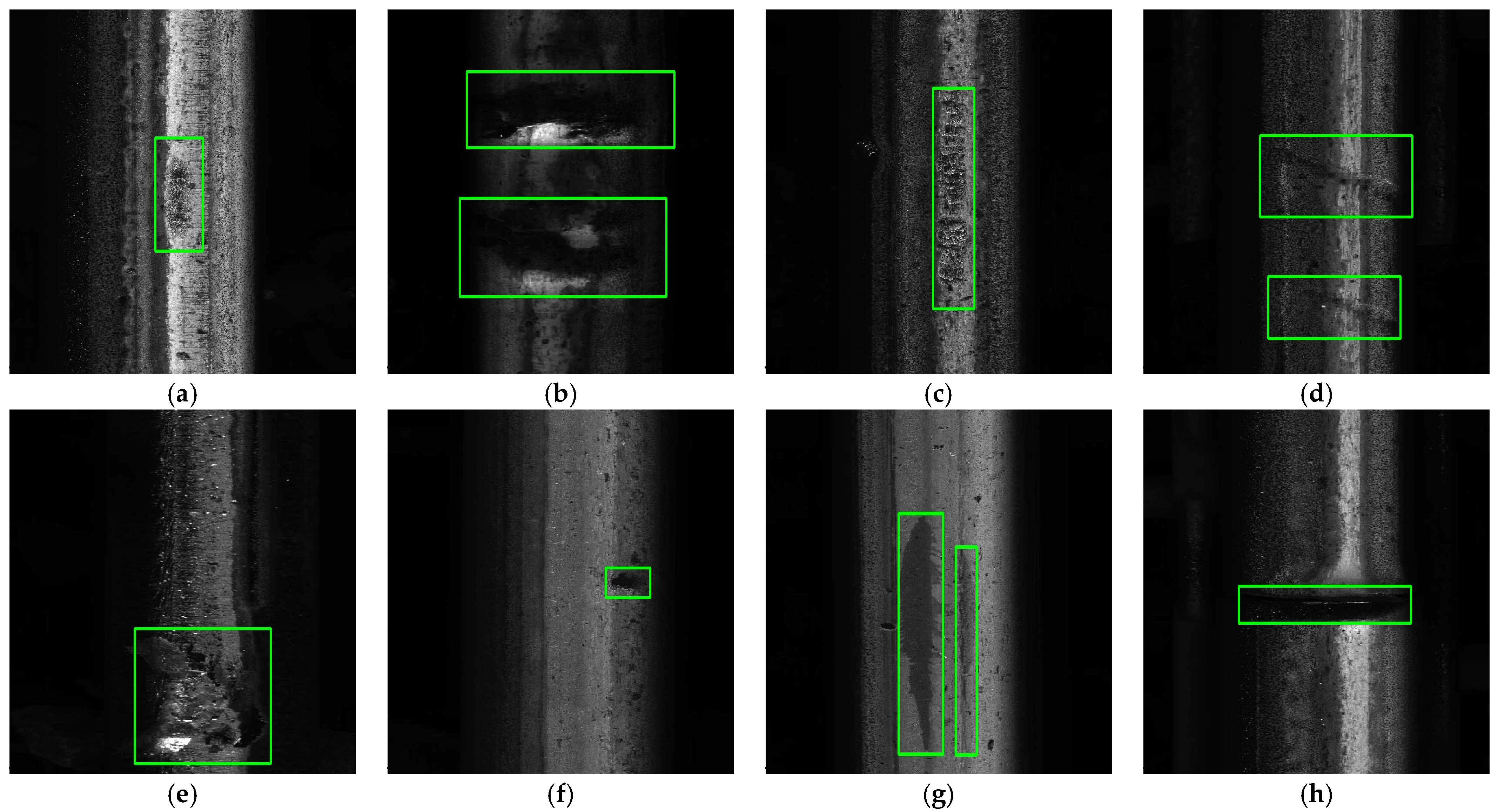 - Mao, Y.; Zheng, S.; Li, L.; Shi, R.; An, X. Research on rail surface defect detection based on improved CenterNet. Electronics 2024, 13, 3580. [Google Scholar] [CrossRef]
