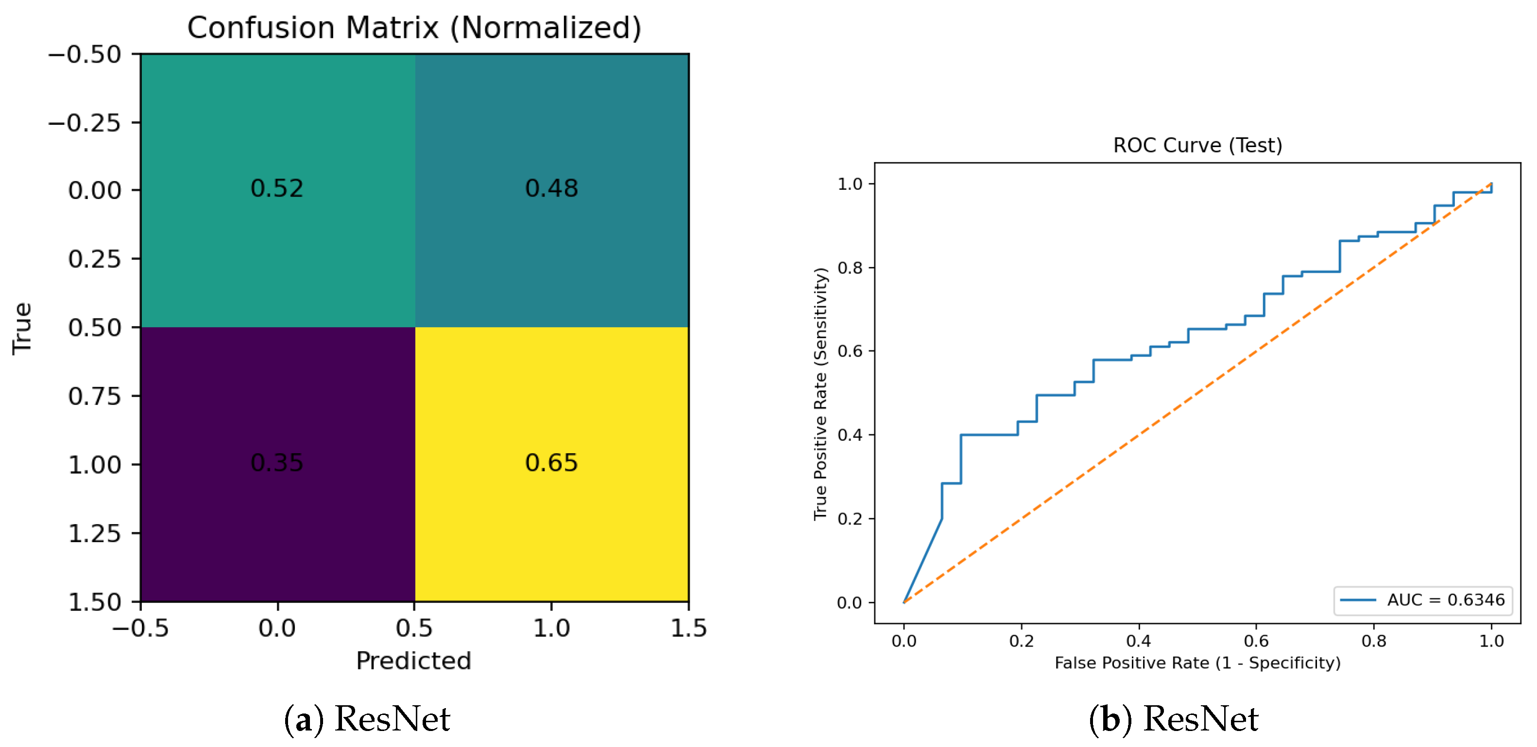 Figure 4 indicate that the proposed distillation approach can effectively preserve classification performance, as evidenced by the ResNet model’s AUC = 0.81 on the OCID dataset; the model demonstrated good discriminative ability, confirming that essential diagnostic features were successfully retained after data reduction.