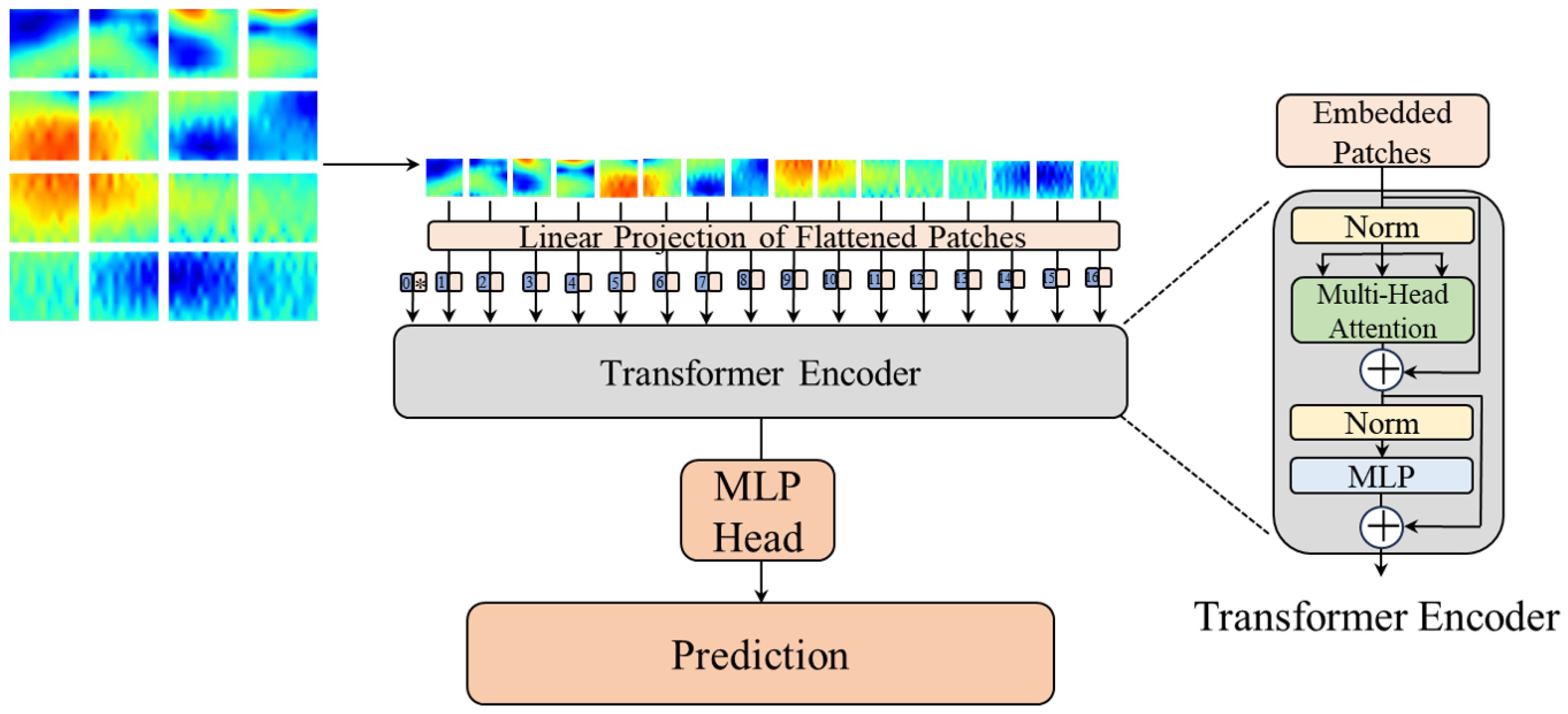 Figure 1, each patch is converted into a vector through embedding, positional encoding containing spatial information is added, and then fed into a standard Transformer encoder. This structure enables ViT to learn global relationships between patches across the entire image from the initial layers of the model.