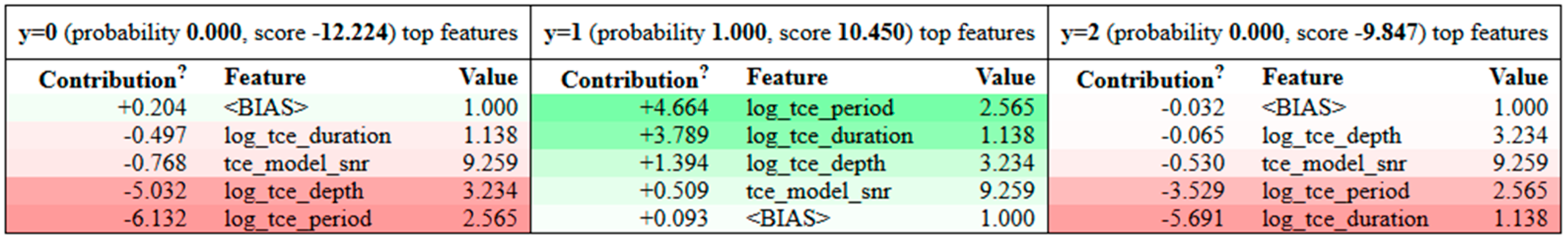 6]. We employ SHAP and LIME, complemented by ELI5, to provide global and local attributes that identify which variables, both signal-related and stellar, drive predictions and errors. Incorporating stellar parameters from the Kepler DR25 catalog adds astrophysical context, enabling plausibility checks (e.g., depth consistent with