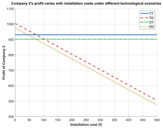 Company 2’s profit varies with installation costs under different technological scenarios.