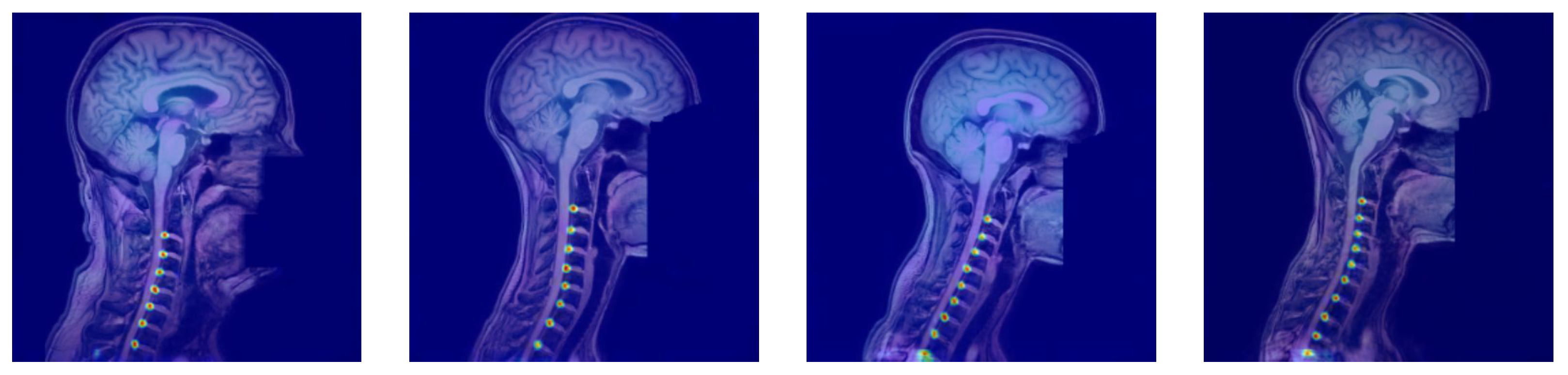 12] utilized clinically annotated spine labels in distinct pipelines for cervical and lumbar MR, employing two configured CNNs for vertebra localization. This region-specific strategy demonstrates that diagnostic workflows can influence network design, but training separate models increases complexity and limits applicability to full-spine scenarios. Zhu et al. [
