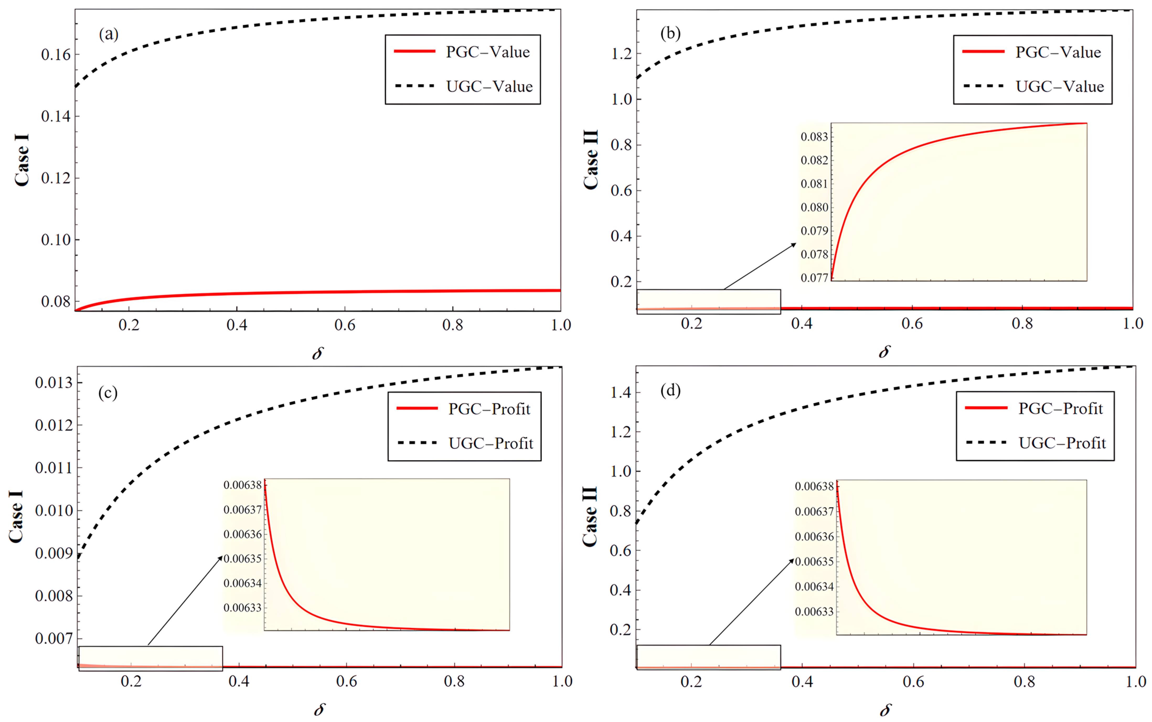 - When , in the smaller case, , , , and increase as increases; in the larger case, , , and decrease, and increases as increases; there is a difference in thresholds: .