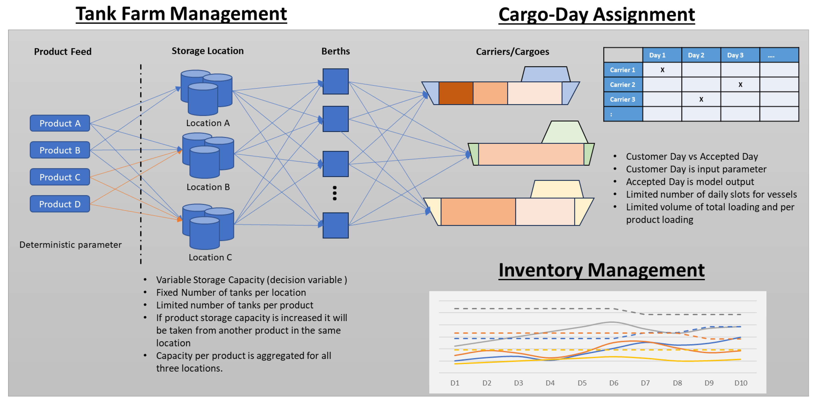 To the best of the authors’ knowledge, the COTS problem has received limited attention in the oil and gas supply chain literature. Existing studies in the literature primarily address berth allocation in the marine supply chain, vessel routing, pipeline scheduling, and refinery scheduling (