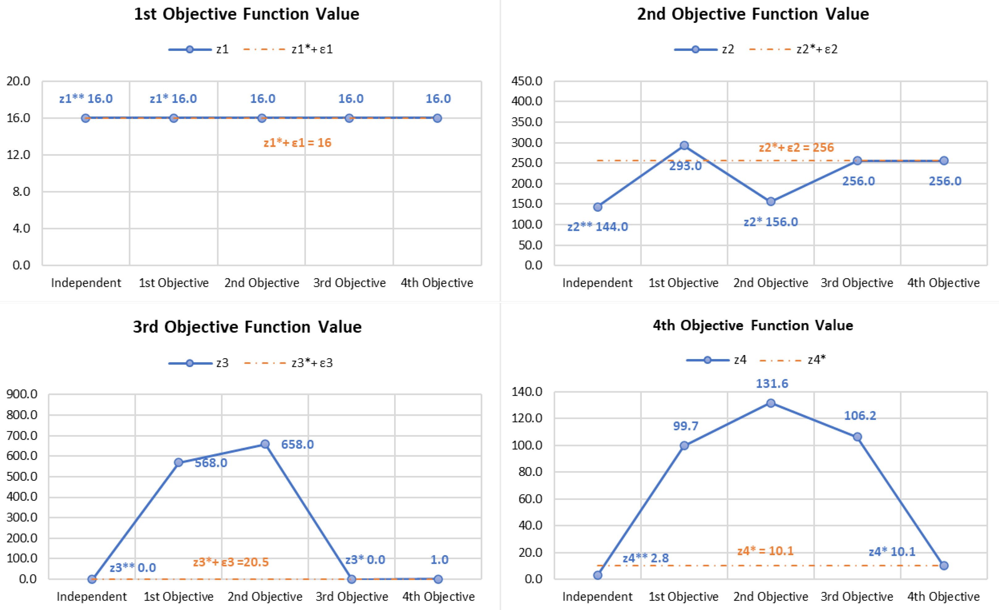 Figure 4 illustrates how each objective behaves on its own and shows that conflicting objectives stay within the allowable deviation of the