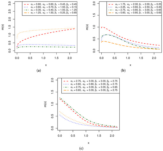where is the HRF (6); see [62]. Figure 3 shows the shape of the MRLT (12) for different values of the model parameters . The latter figure shows that the MRLT behaves oppositely to the HRF; for example, if the HRF is increasing, the MRLT is decreasing.