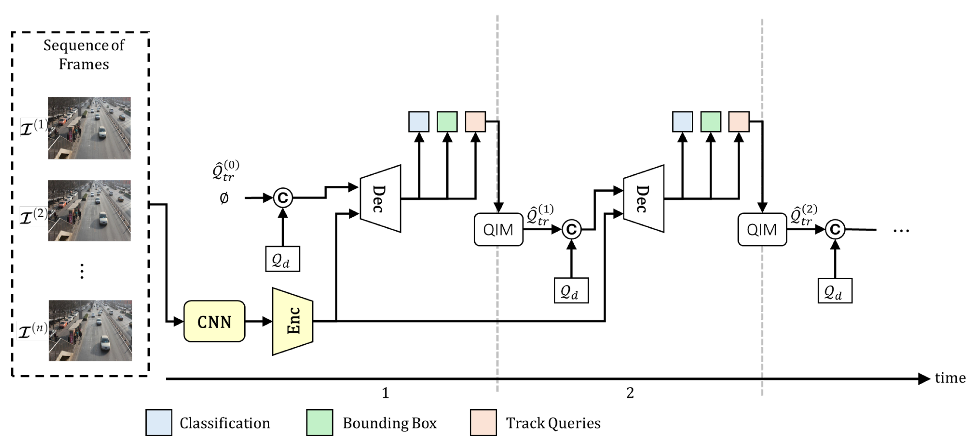 - Detection queries are matched exclusively to newborn vehicles using bipartite matching between predictions of detect queries, , and the ground truth of newborn objects, , at frame n.