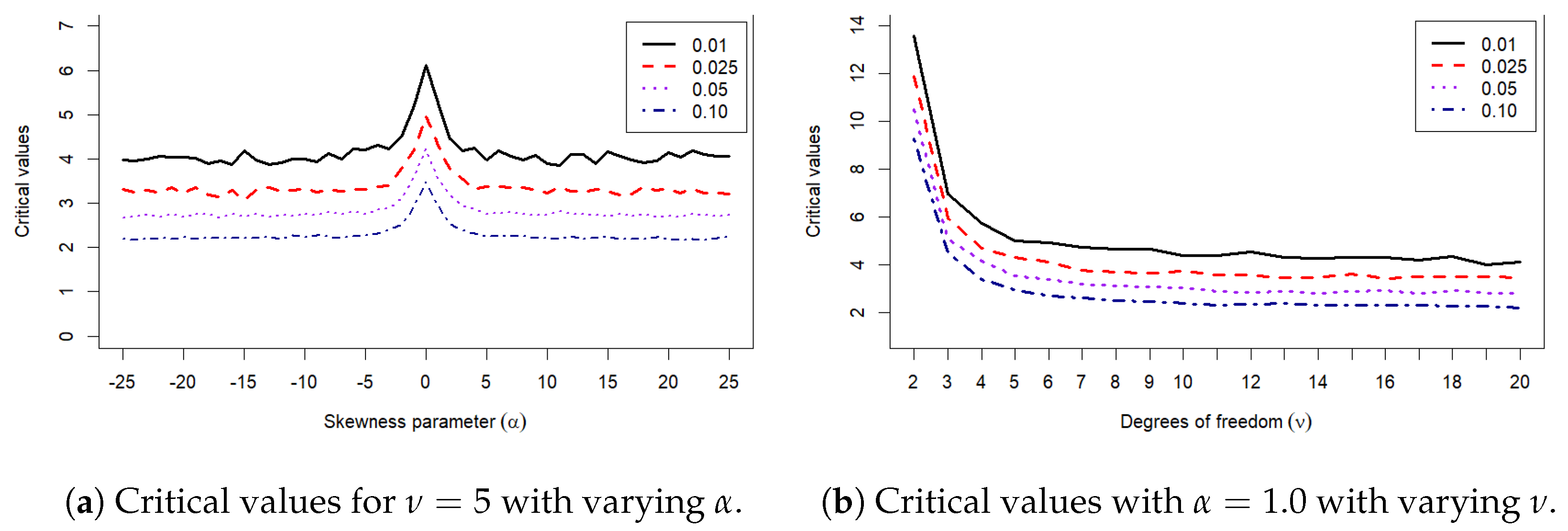 Despite this progress, the assessment of the Skew-t model remains essential. In practice, misspecification of tail weight or asymmetry can distort inference on extremes, dependence, and risk. This motivates rigorous goodness-of-fit (GoF) procedures tailored to Skew-t families—methods that can diagnostically test statistical adequacy against alternatives that differ in tail behavior, asymmetry, or both.