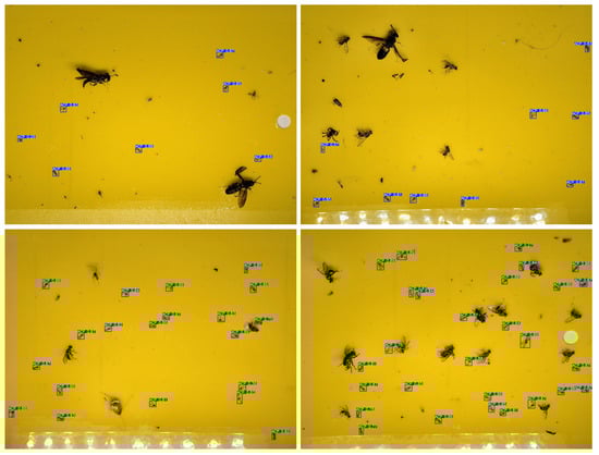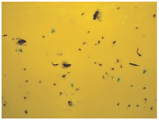 A high-definition macro-imaging protocol was used. The working distance between the camera and the board was kept within 28–35 cm. The resolution of a single image was 3072 × 4080 pixels. Fixed fill lights were used in the laboratory to provide consistent illumination against a uniform background. Basic quality control was performed, and images with obvious defocus or severe glare were removed. In total, 600 high-definition yellow-board images were obtained to form the ACP-YSTD. On this basis, high-quality manual annotation was performed and strictly reviewed according to unified guidelines. An annotation example is shown in Figure 2. Finally, 3837 annotated instances of ACP were obtained, providing reliable data support for subsequent model training and evaluation.