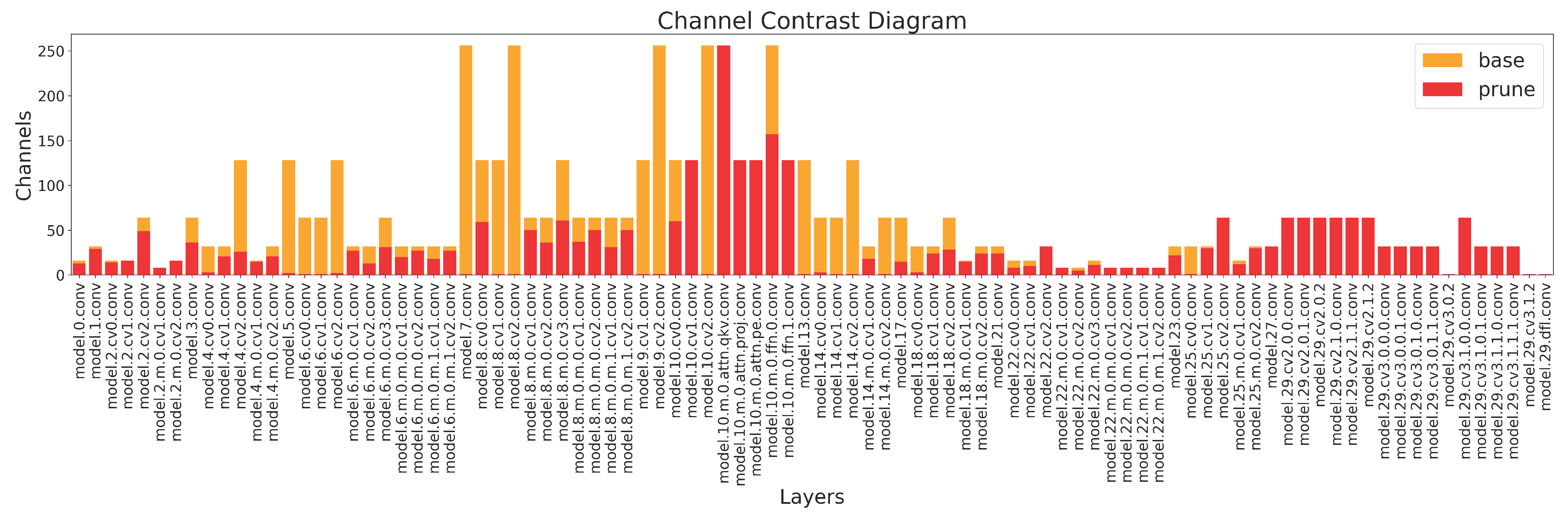 23] for channel-level structured pruning, which significantly reduces parameters, FLOPs, and model size.