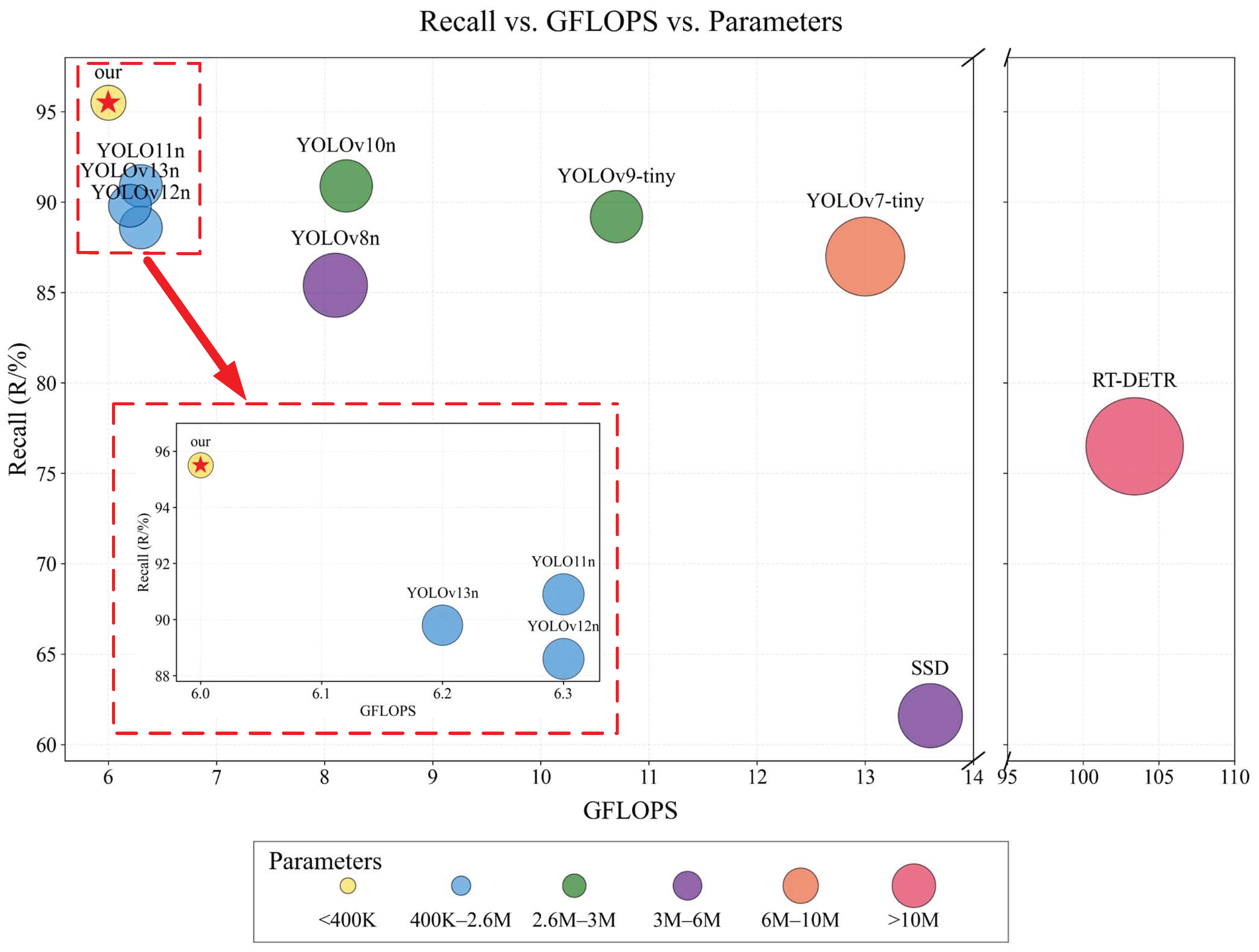 | Model | P/% | R/% | F1 | Parameters | Model Size/M | GFLOPs |