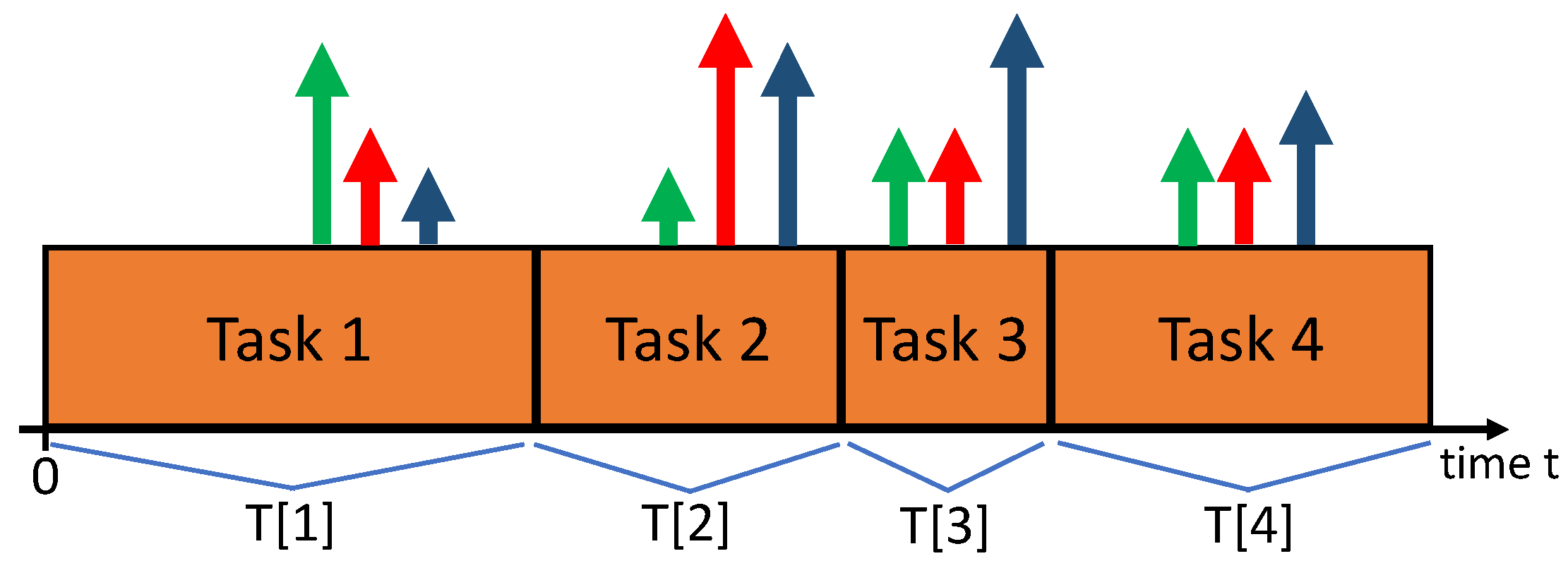 - Claim 1: If for some task , thenTo prove Claim 1, observe that for each task k, we haveThus, the update (28) implies can increase by at most over one task. Thus, can increase by at most over any sequence of m or fewer tasks. By construction, . It follows that if , then for all .
