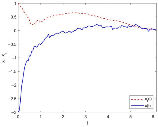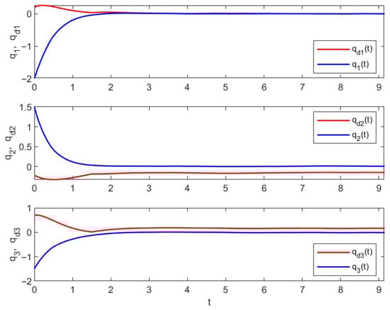See Figure 9 in order to complete the task of the robot arm moving along with a given trajectory from A to B in the time interval . The control τ in (28) should be designed rationally such that can take proper values at every moment . So, the values of should track a given reference . The error between them is defined as
