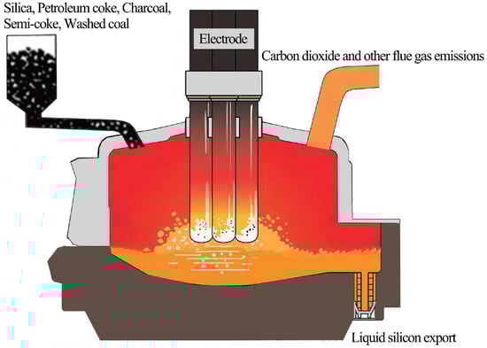 Illustration of industrial silicon smelting process.