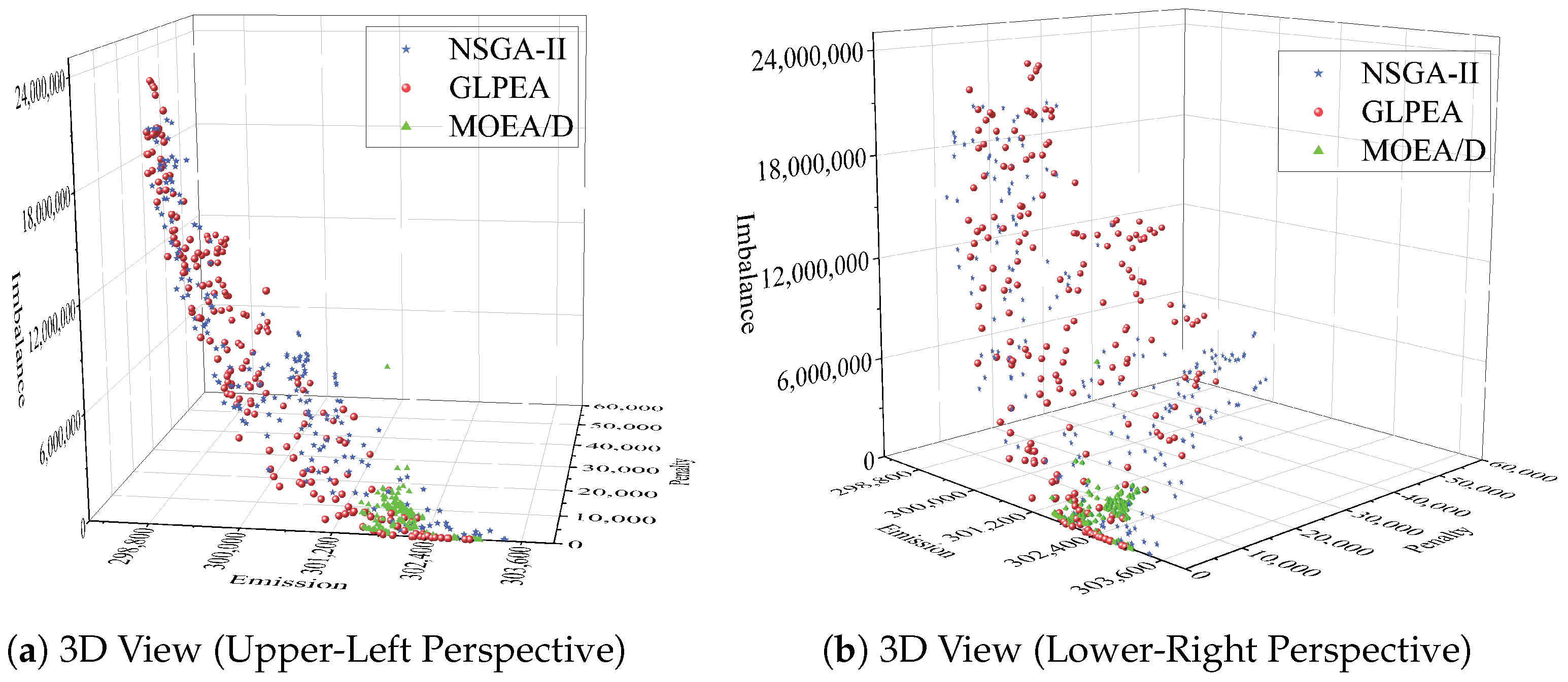 5.7.2. APFs Solved by GLPEA, NSGA-II, and MOEA/D