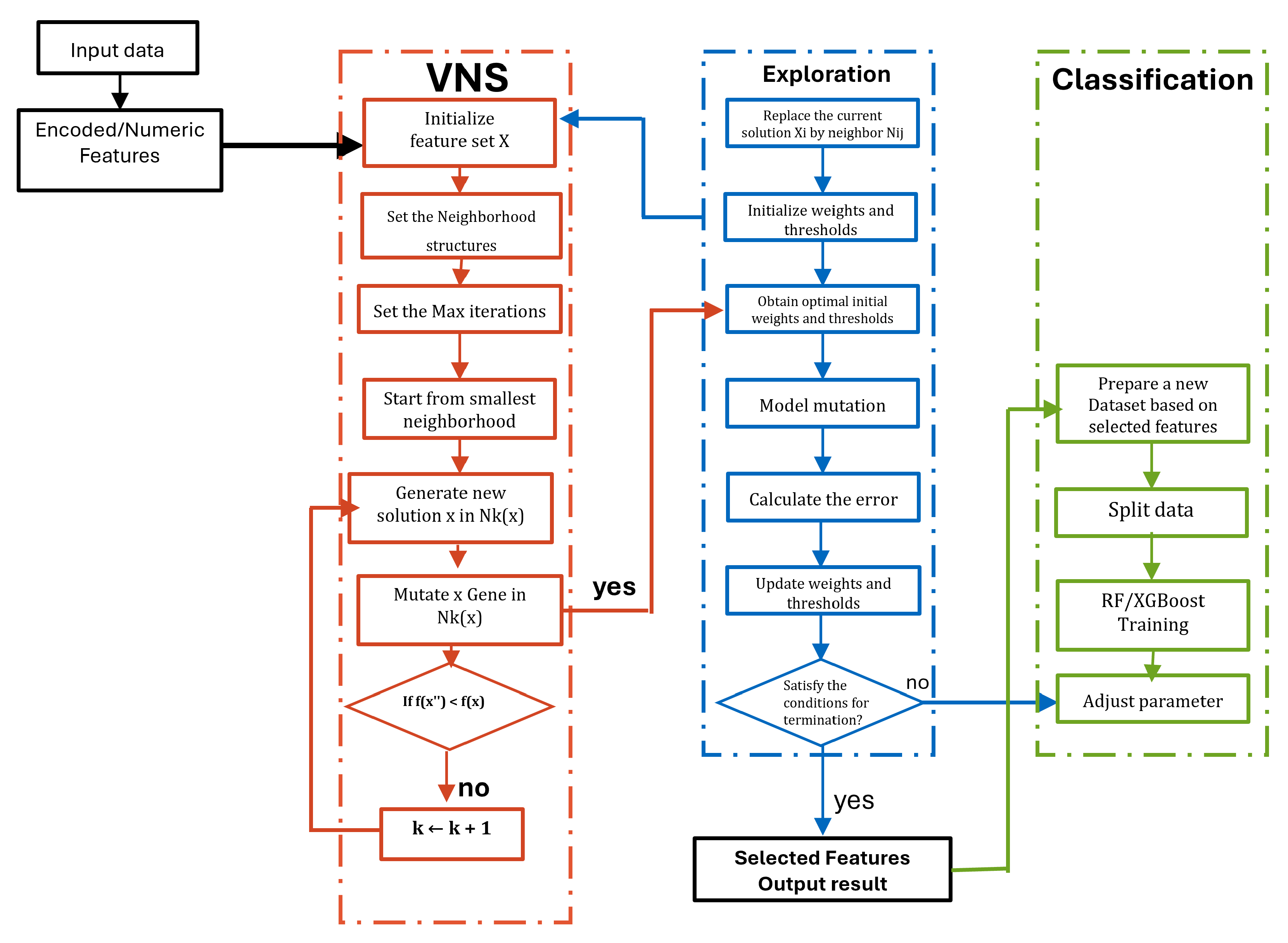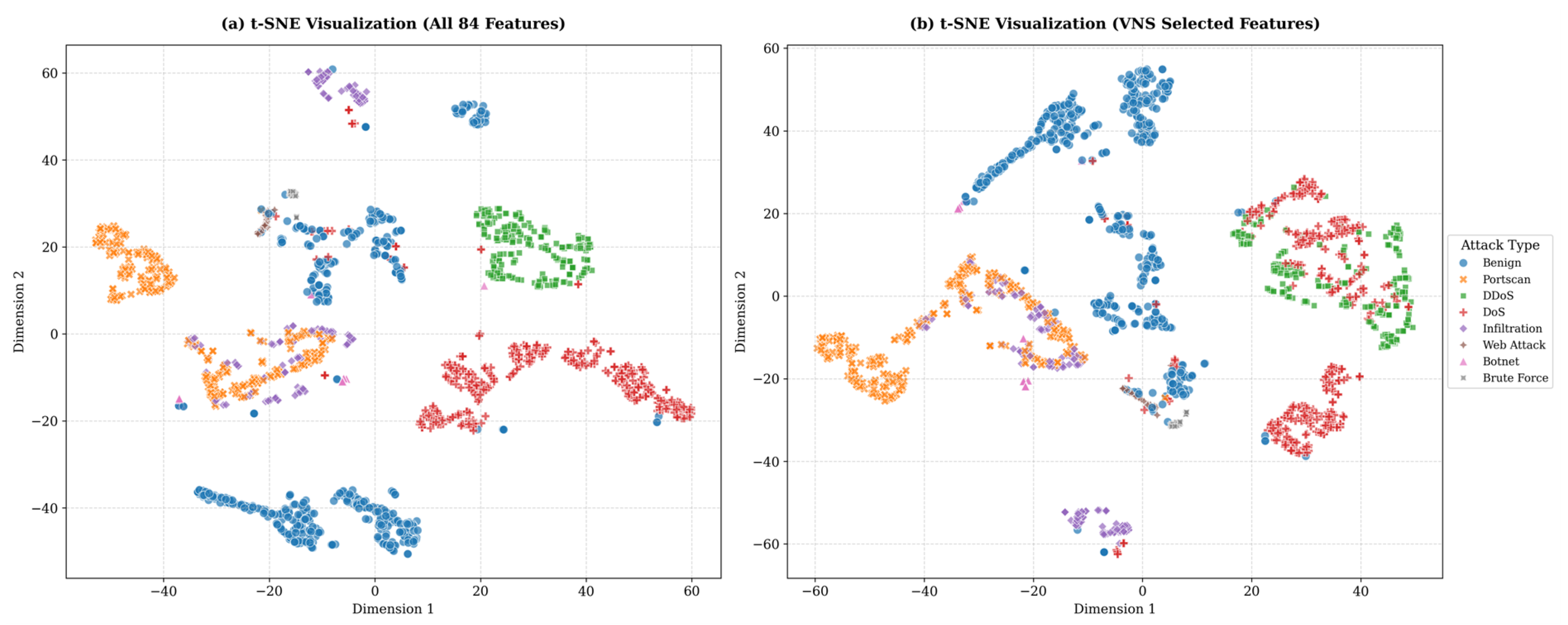 Table 11 show that VNS and XGBoost were combined to achieve a good balance between detection accuracy and computational complexity. Compared with the original dataset, the VNS-based feature optimization reduced the feature dimensionality by approximately 50% while maintaining—and even enhancing—the overall model’s performance. Consequently, this significant decrease directly reduced training time and memory consumption, demonstrating VNS’s ability to conduct localized searches over several neighborhoods, effectively avoiding local optima, and finding compact, discriminative feature sets.