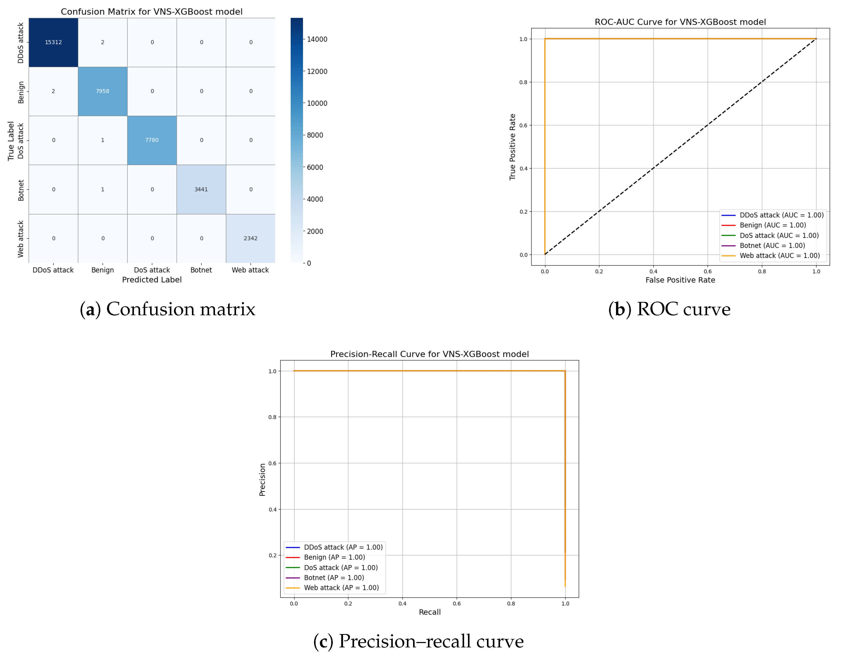 Section 4.3 indicate that the proposed VNS–XGBoost framework performs well in multiclass intrusion detection, achieving high accuracy and generalization on both the IDS2017 and IDS2018 datasets given in