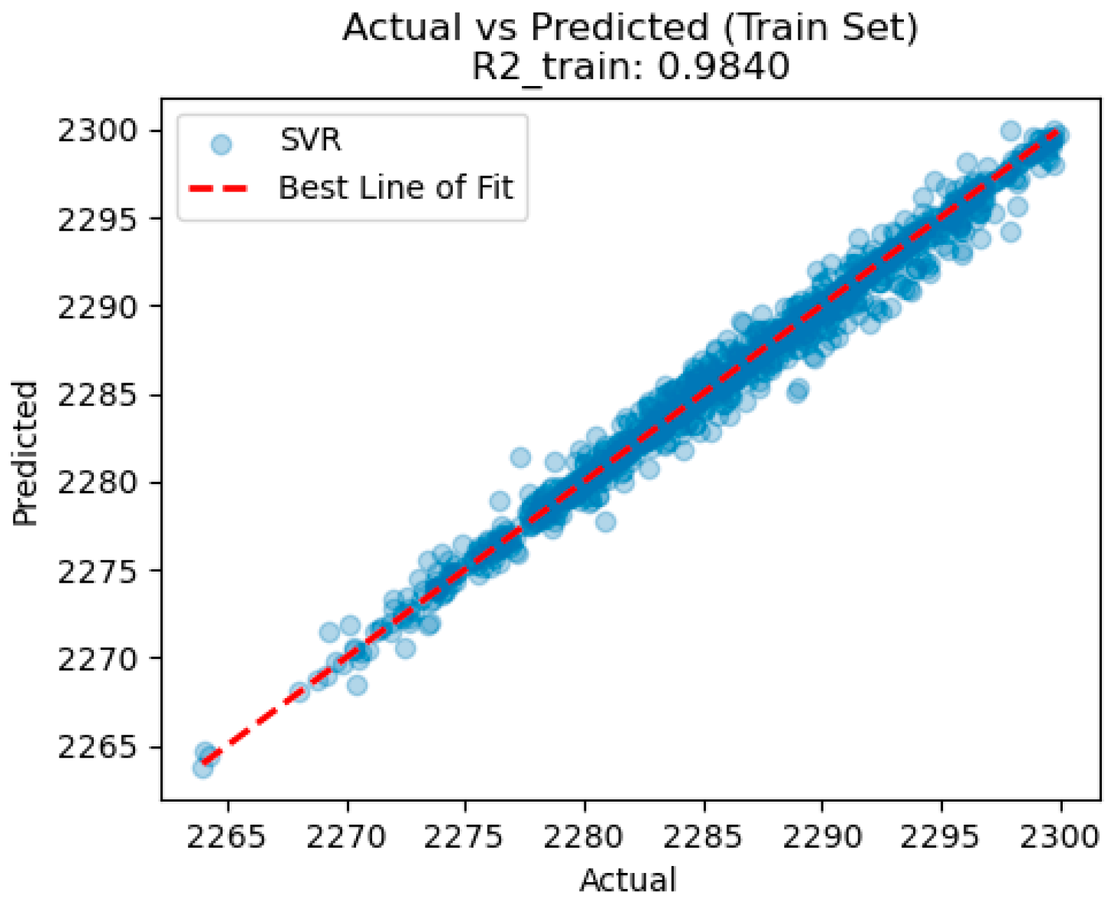 Figure 12. The model performance of the SVR model on the training set.