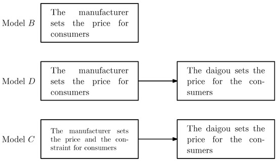 The game sequences in all three models follow a consistent decision sequence: the manufacturer first determines the price, and the domestic daigou then sets the selling prices for the product based on the observed strategy from the manufacturer.