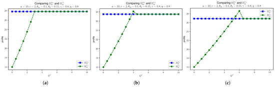 Let and represent the equilibrium quantities supplied by the manufacturer’s direct channel and the daigou, respectively. As per the effort-driven demand expansion in the general model, the daigou’s presence increases the overall market size from the baseline to , reflecting greater consumer reach through the informal channel [48,49,50,51]. The daigou incurs quadratic costs parameterized by for these efforts, introducing a trade-off that influences its pricing and quantity decisions while ensuring concave profits for equilibrium analysis.