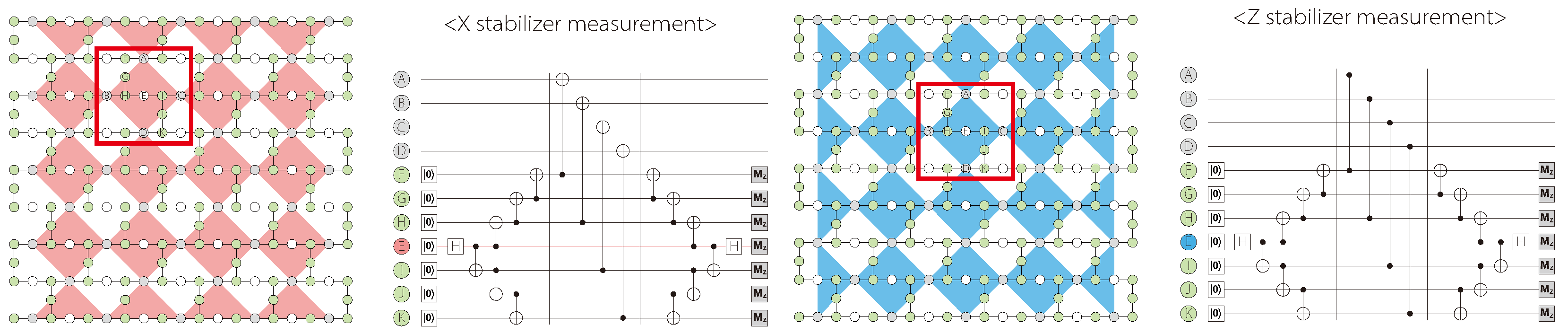 | Method | Stabilizer Measurement | Number of Physical Qubits | Number of CNOT Gates | Number of Readout Gates |