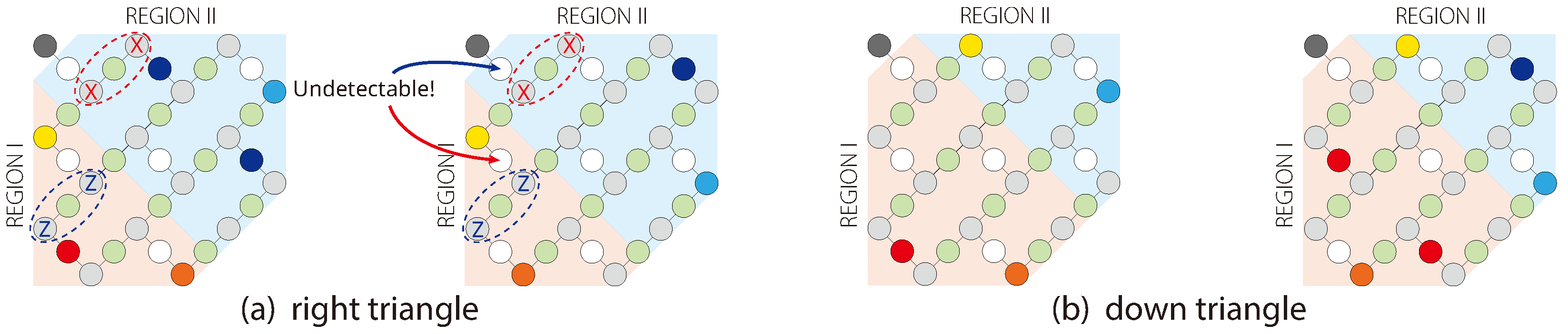 - Bravyi, S.B.; Kitaev, A.Y. Quantum codes on a lattice with boundary. arXiv 1998, arXiv:quant-ph/9811052. [Google Scholar] [CrossRef]