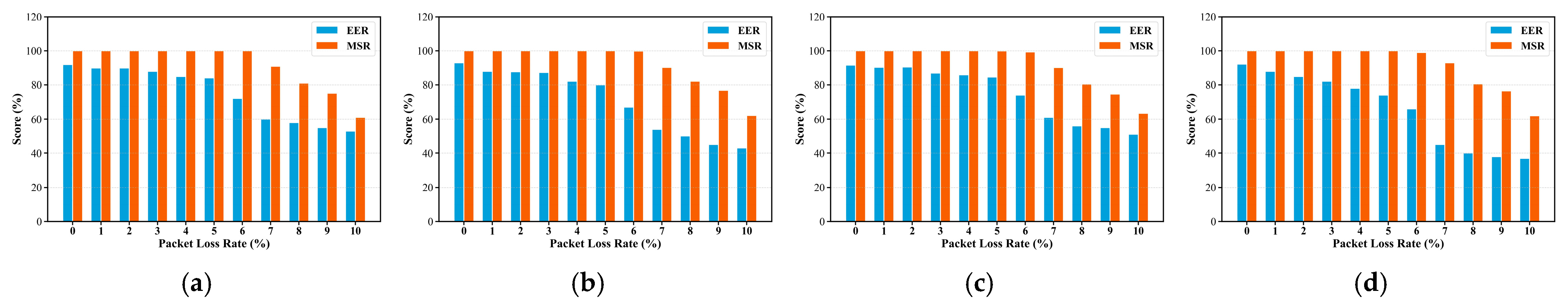 are the numbers of correctly received and total transmitted covert messages. A higher MSR indicates stronger robustness, meaning the covert channel can maintain stable and accurate message delivery even in noisy or lossy network environments.