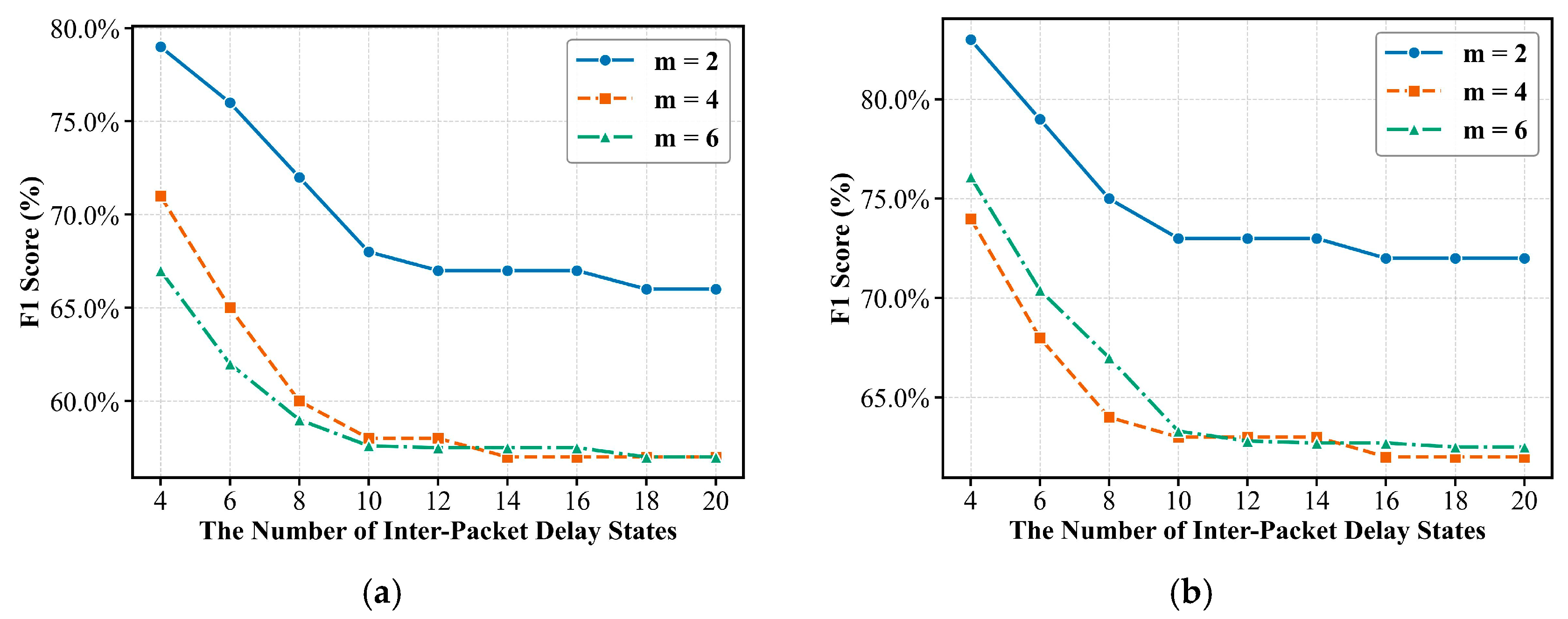 , suggesting that excessive state granularity introduces redundant modeling without further benefit. Similarly, the inter-packet delay states