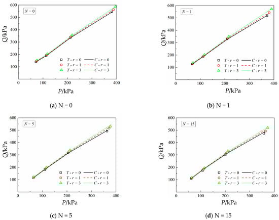 Comparison of strength predictions and test results for different root contents (T: Tested; C: Computed; r: the number of roots; N: the number of freezing–thawing cycles).
