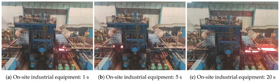 The experimental data were collected directly from on-site industrial equipment in the medium and thick plate production line. To provide a clearer understanding of the production environment where the data were obtained, the photographs of the actual on-site equipment are shown in Figure 2. The figure consists of three subfigures, illustrating different sections of the production setup.
