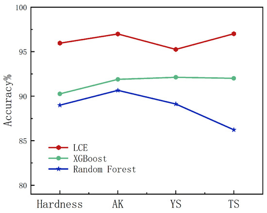 Accuracy comparison of LCE, random forest, and XGBoost.