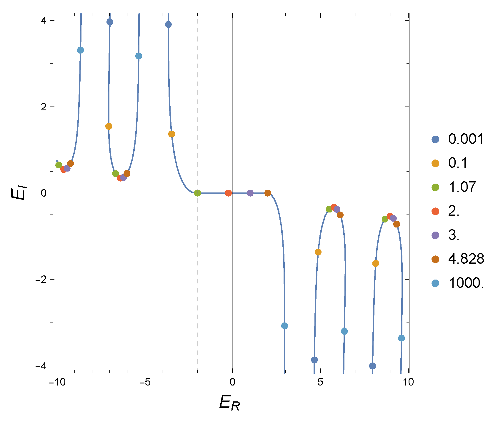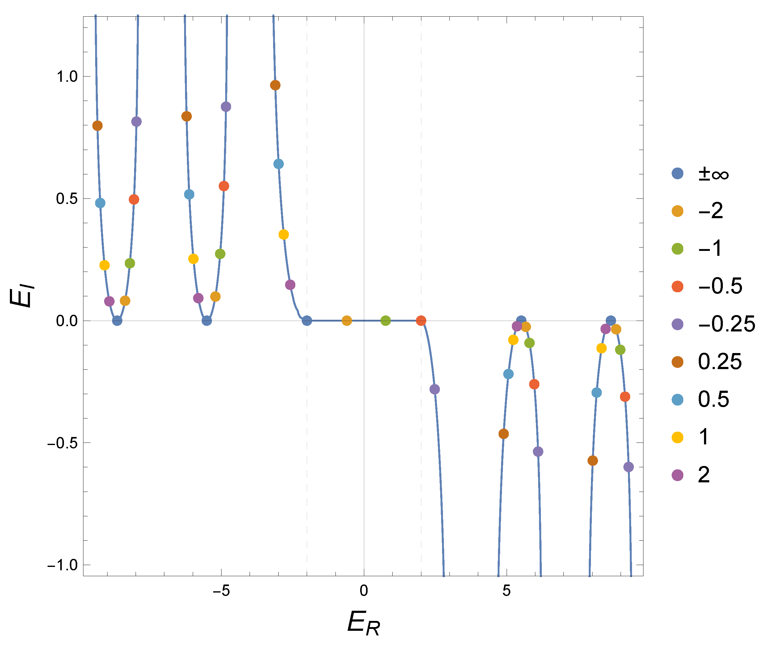 , which in turn depend on the values of the strength potentials. In the outer region, all energies
