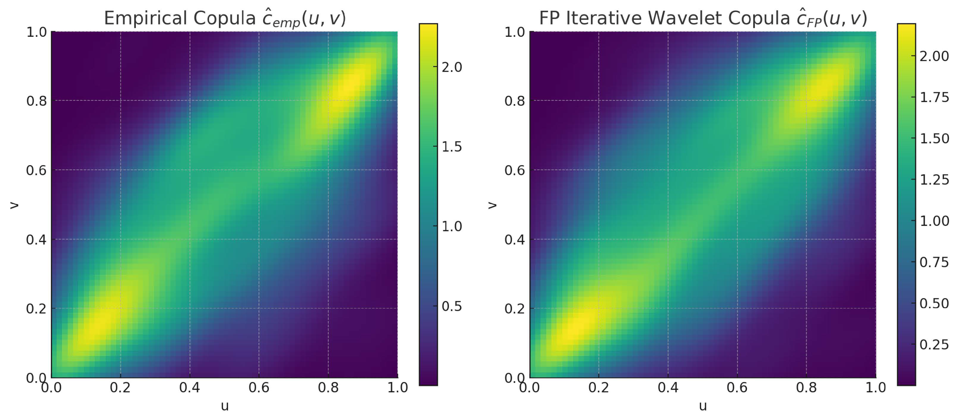 In this paragraph, we extend the iterative wavelet thresholding framework to the estimation of copula densities. Unlike classical wavelet-based copula estimators, the proposed fixed-point iterative procedure adaptively updates the threshold to balance noise suppression and structural preservation in the joint dependence function. This adaptive behavior is particularly advantageous in financial contexts, where copulas often exhibit localized tail dependencies and nonlinear patterns that require scale-sensitive denoising.